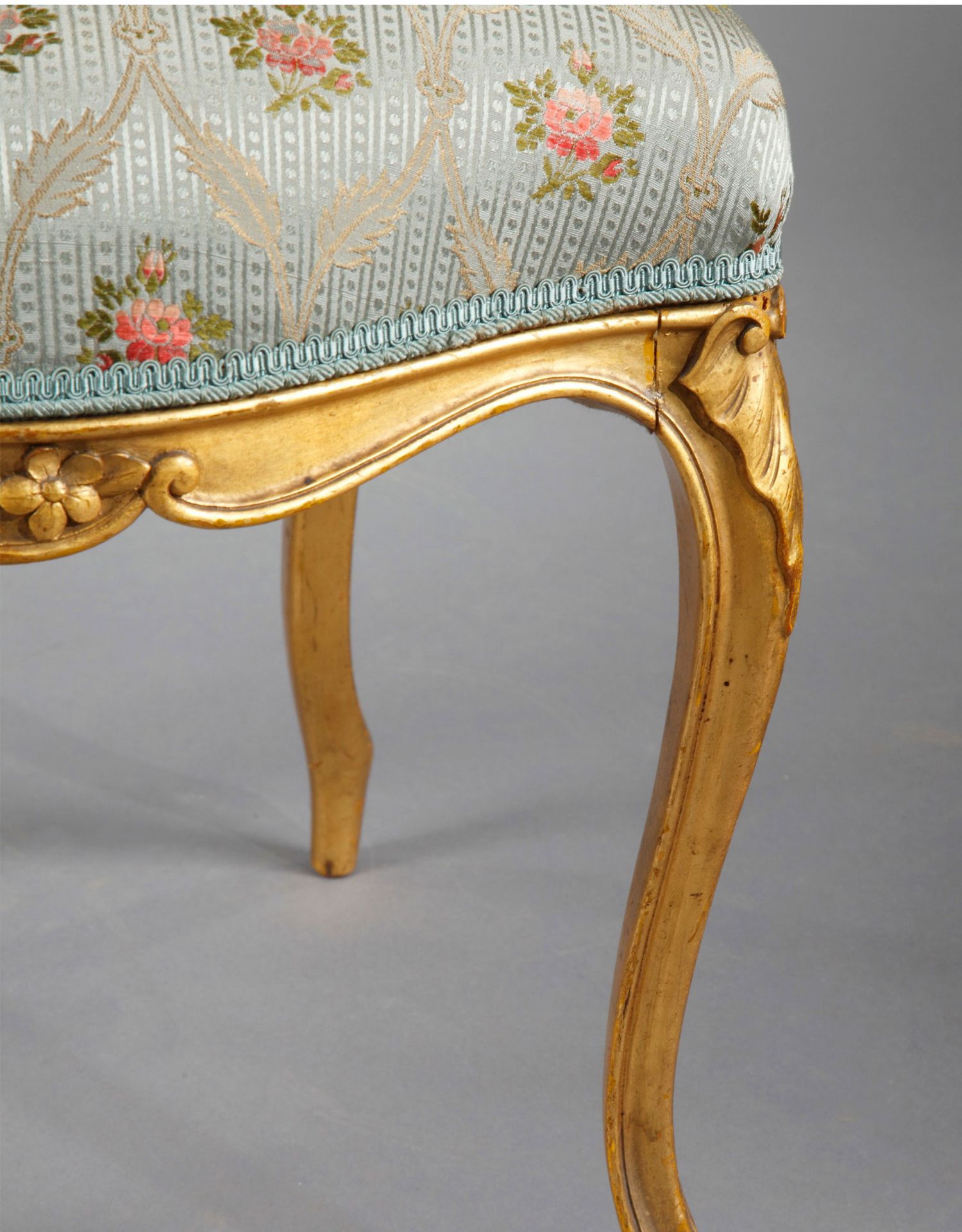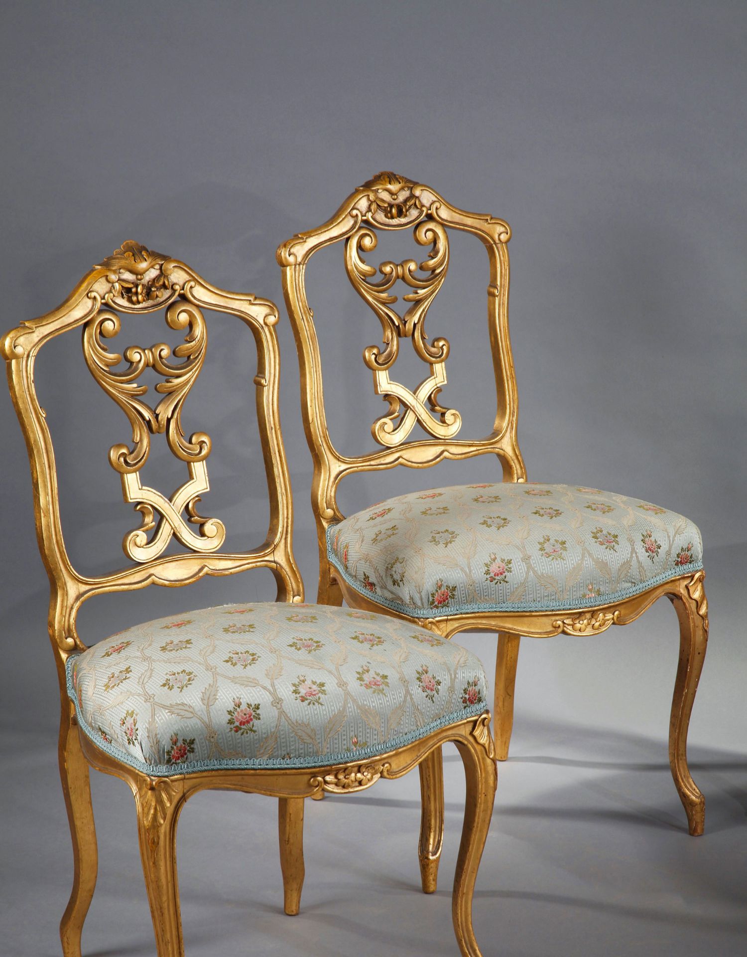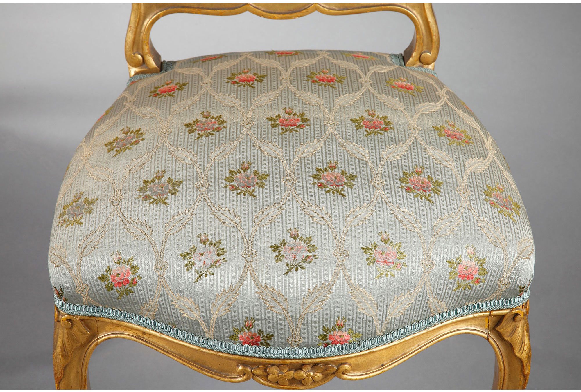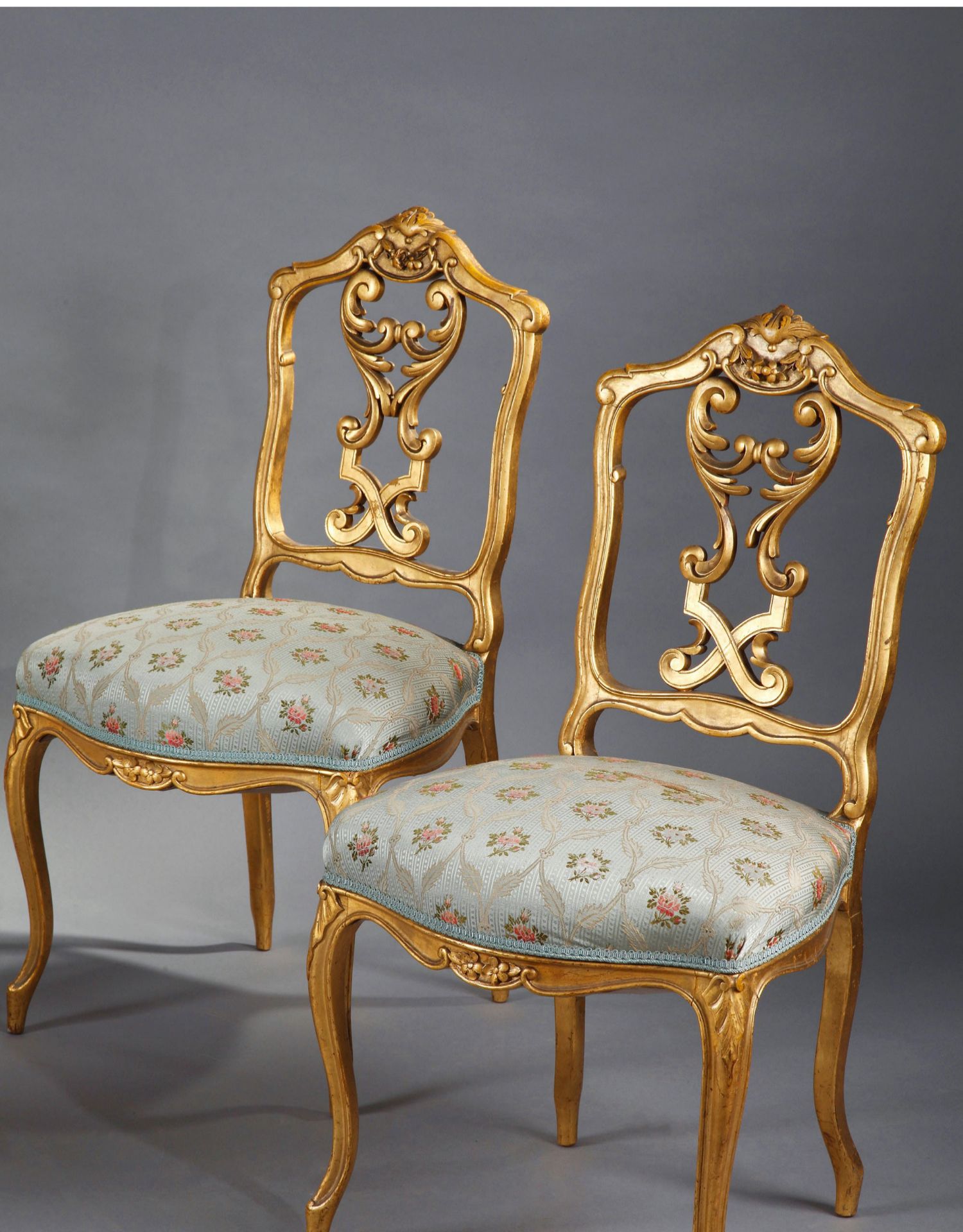 独角鹿西洋古董家具路易十五风格丝质面料金漆木雕镂空靠背椅一套