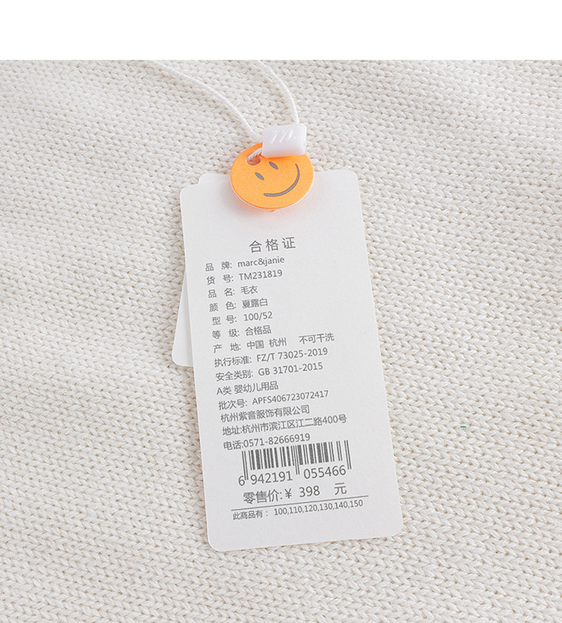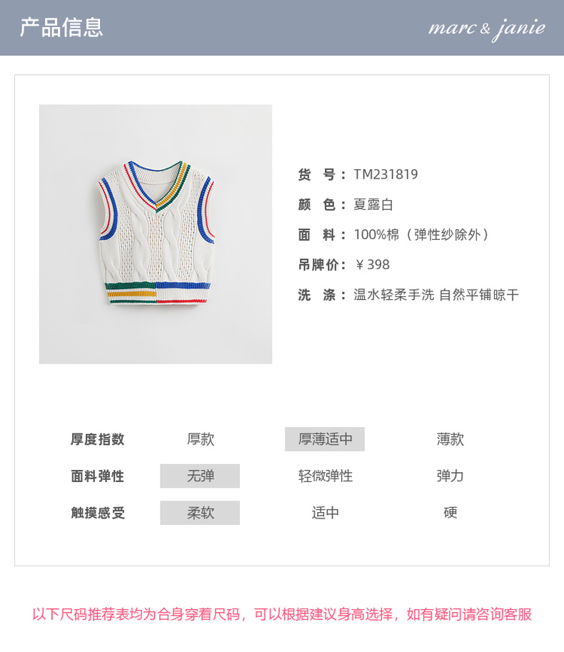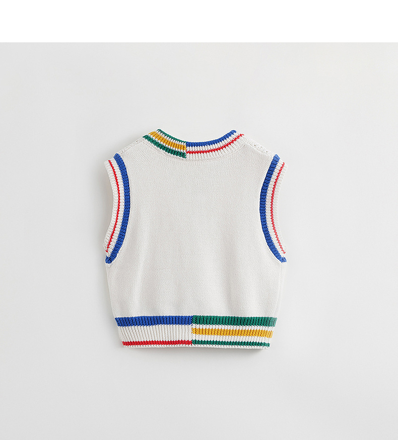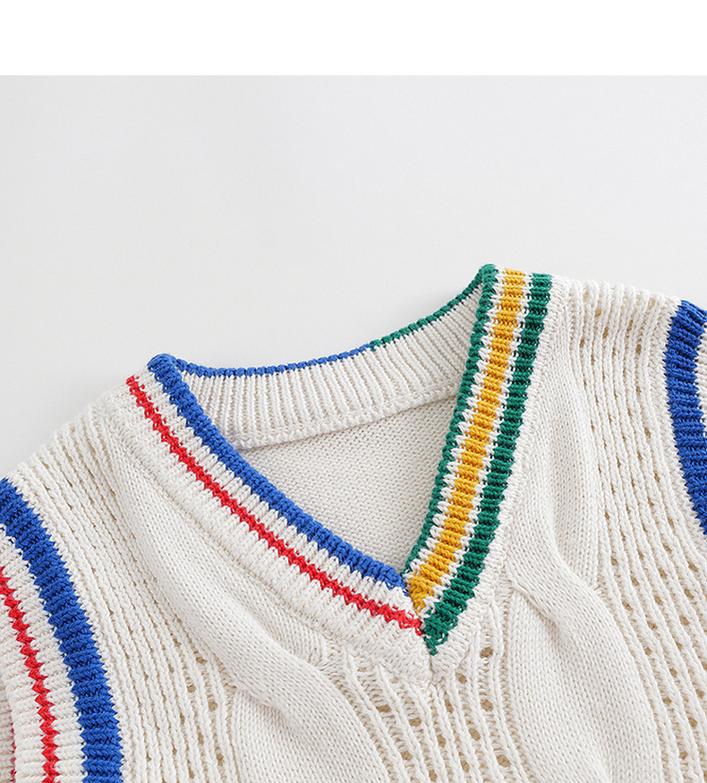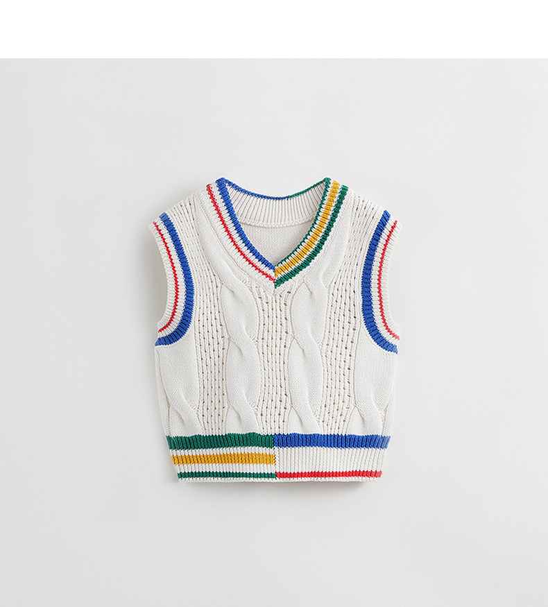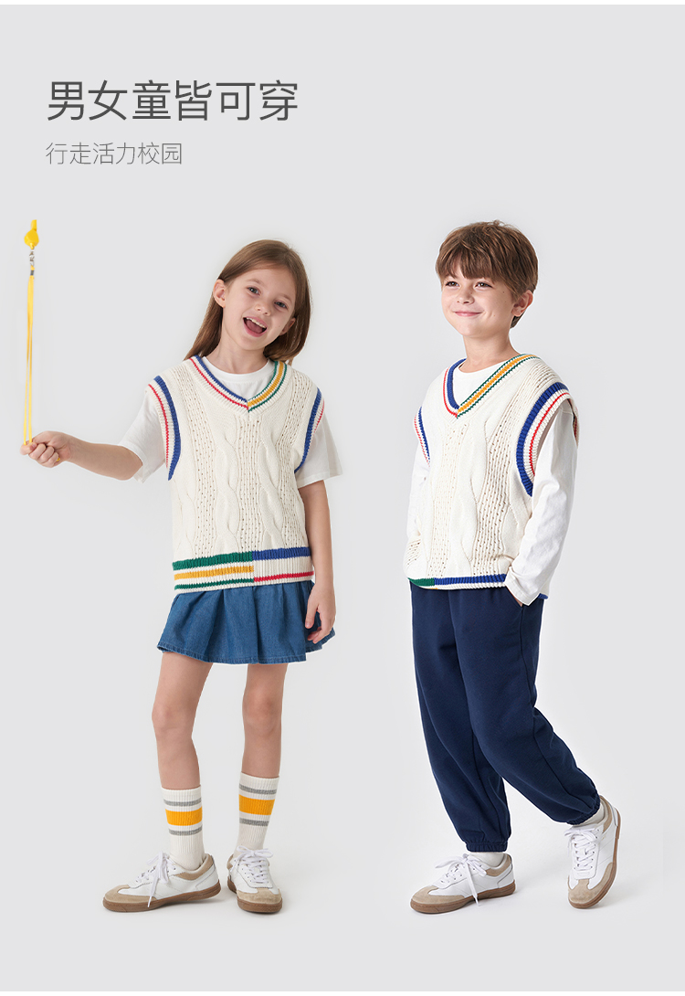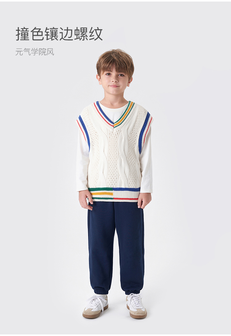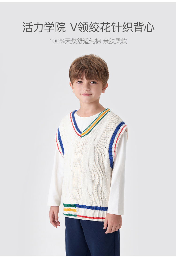 马克珍妮秋装新款 男童学院风V领绞花柔软针织衫马甲231819