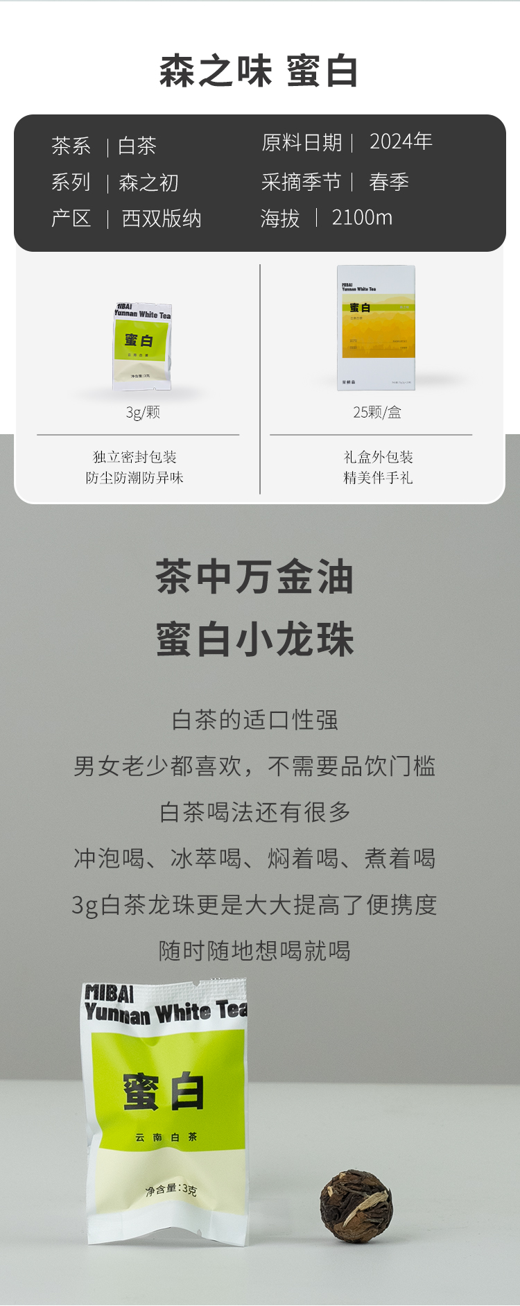 茶鲜森蜜白古树白茶高海拔蜜香小龙珠拍3发4送杯子【森之味】