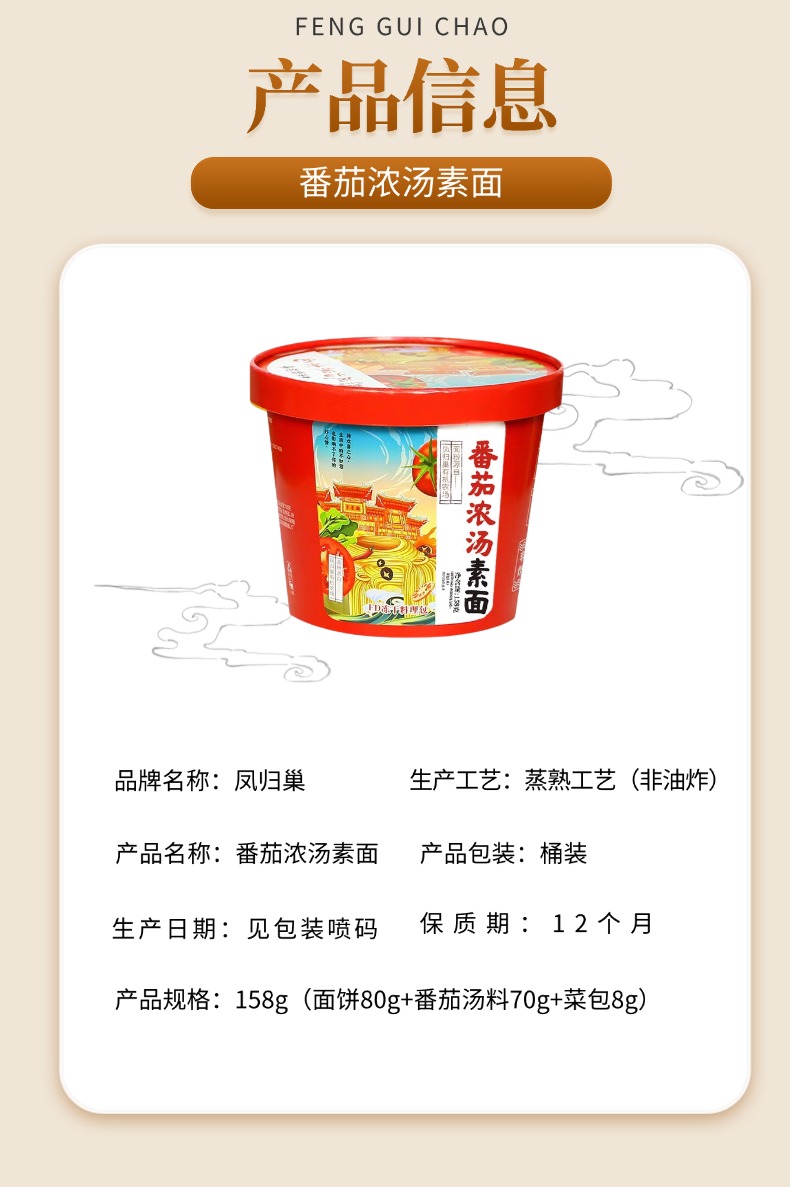 非油炸素食方便面 158g/桶 不含五辛 番茄浓汤口味凤归巢 酸甜可口料包浓郁 旅行加班家中必备