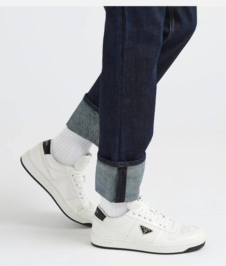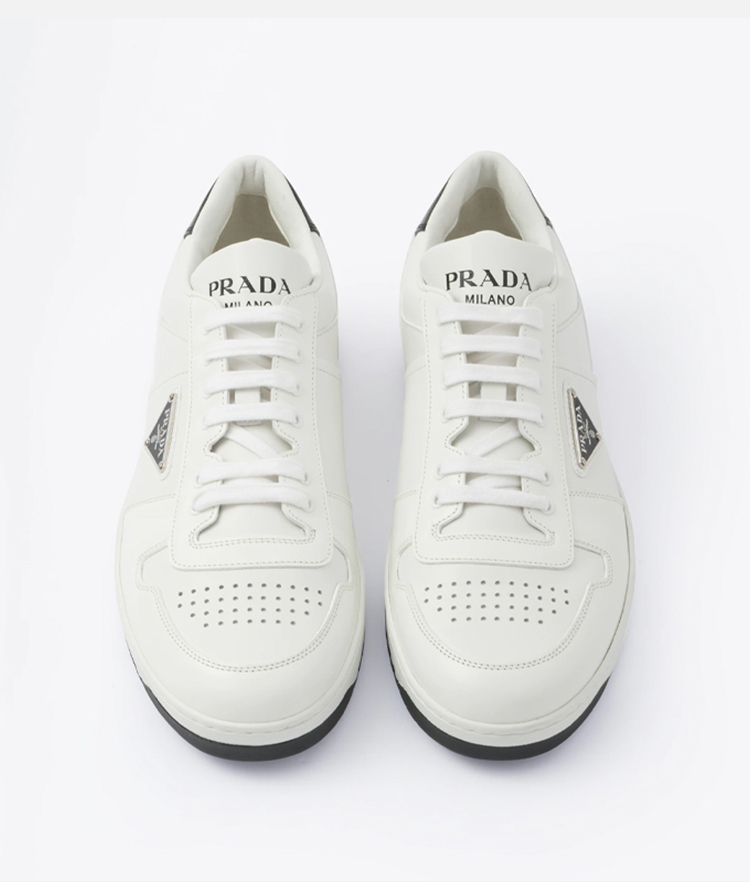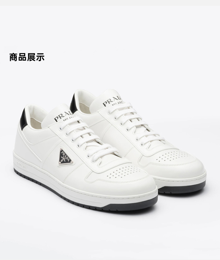 【一】PRADA 普拉达 男士 Downtown 皮革珐琅金属三角形徽标休闲运动鞋 白色 2EE364 3LJ6 F0964
