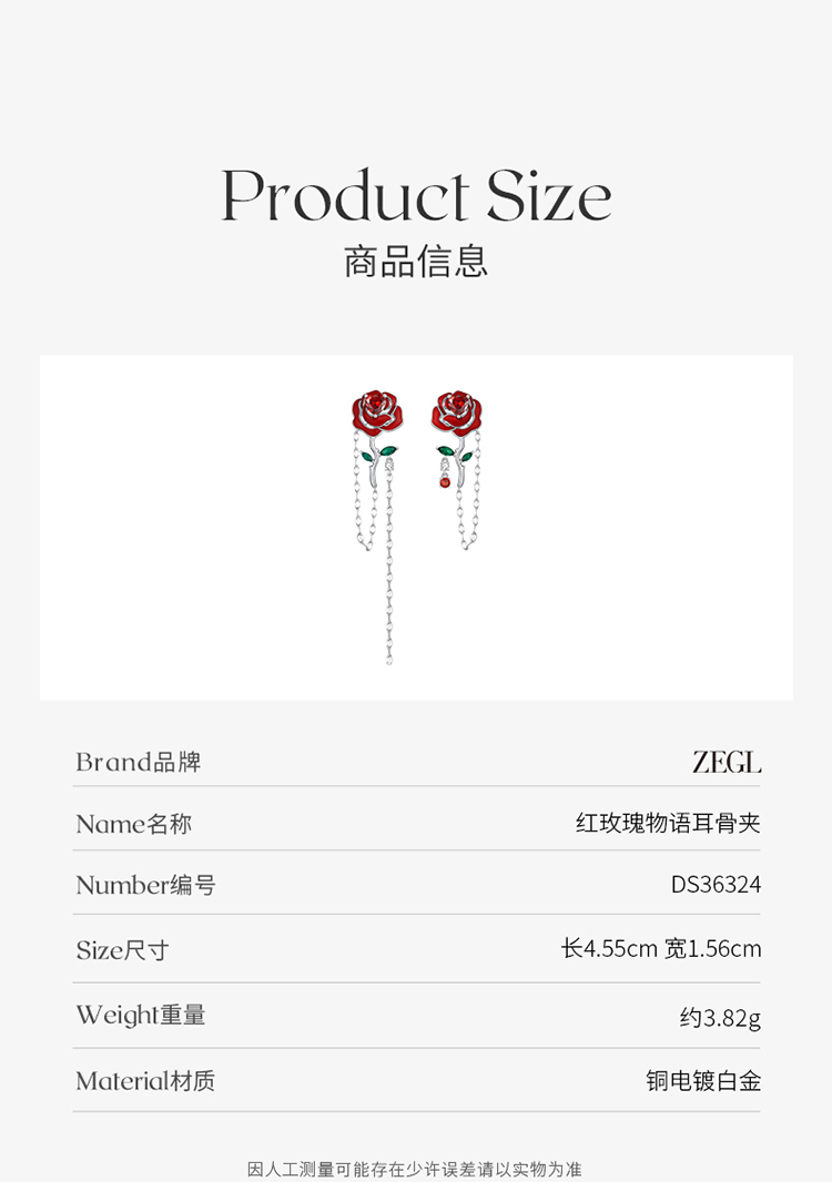ZEGL设计师红玫瑰系列红色花朵耳环女小众设计感耳钉不对称耳饰品