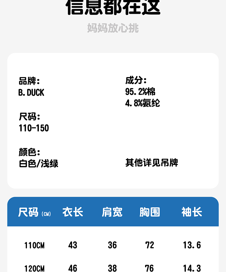 [驱蚊抗菌]bduck小黄鸭童装女童短袖T恤夏季纯棉宝宝上衣儿童薄款90-140 FF2701038