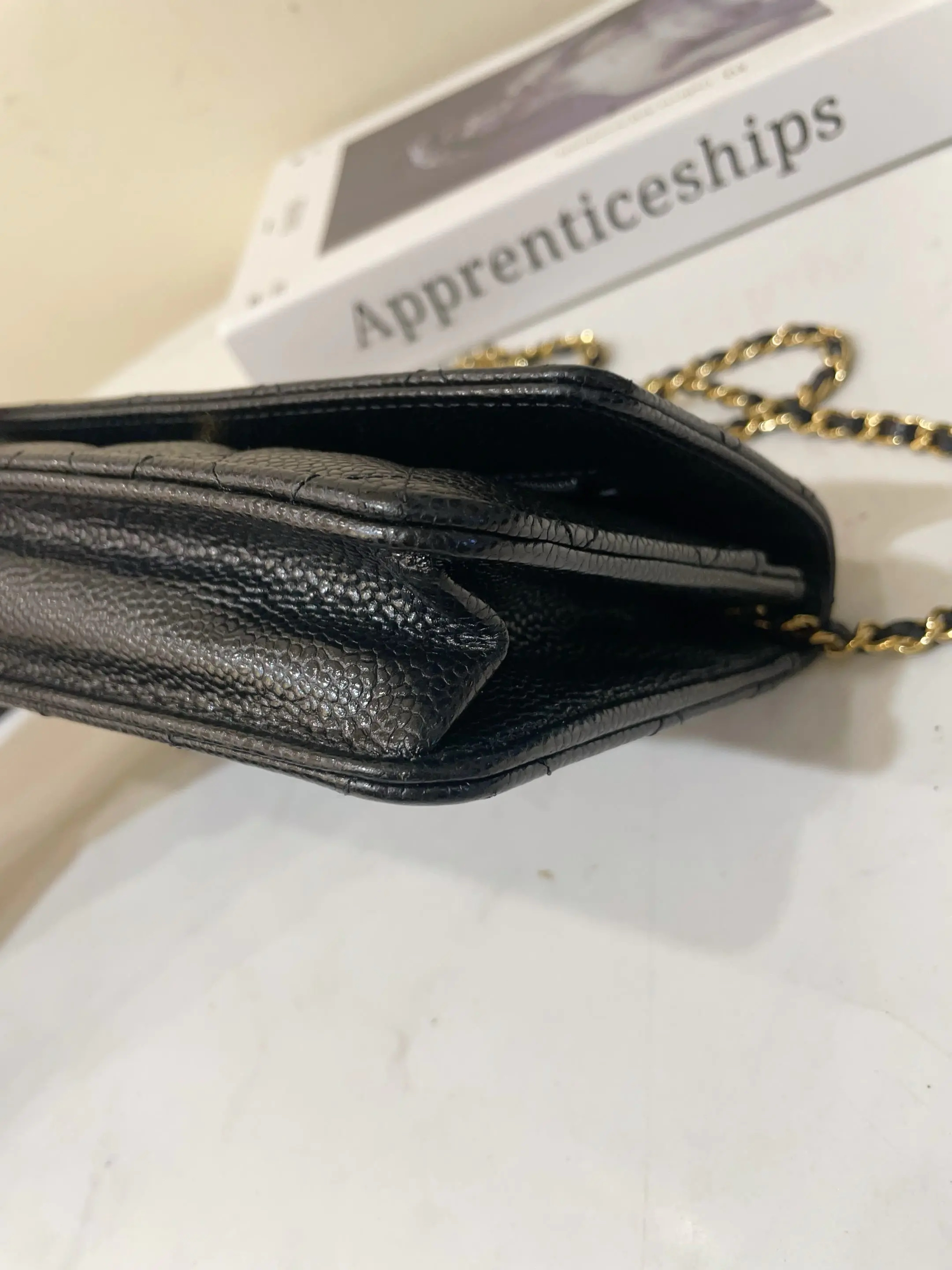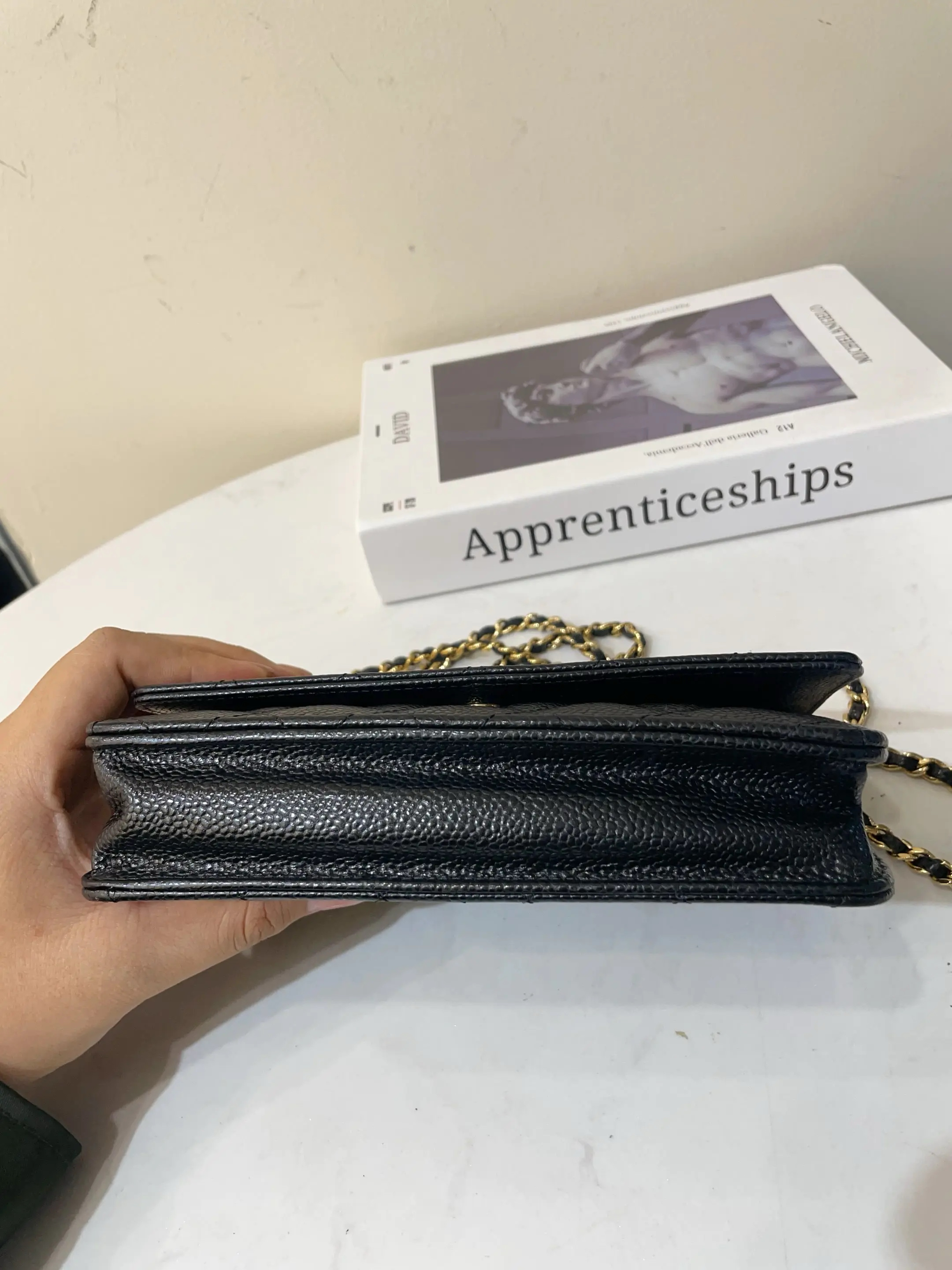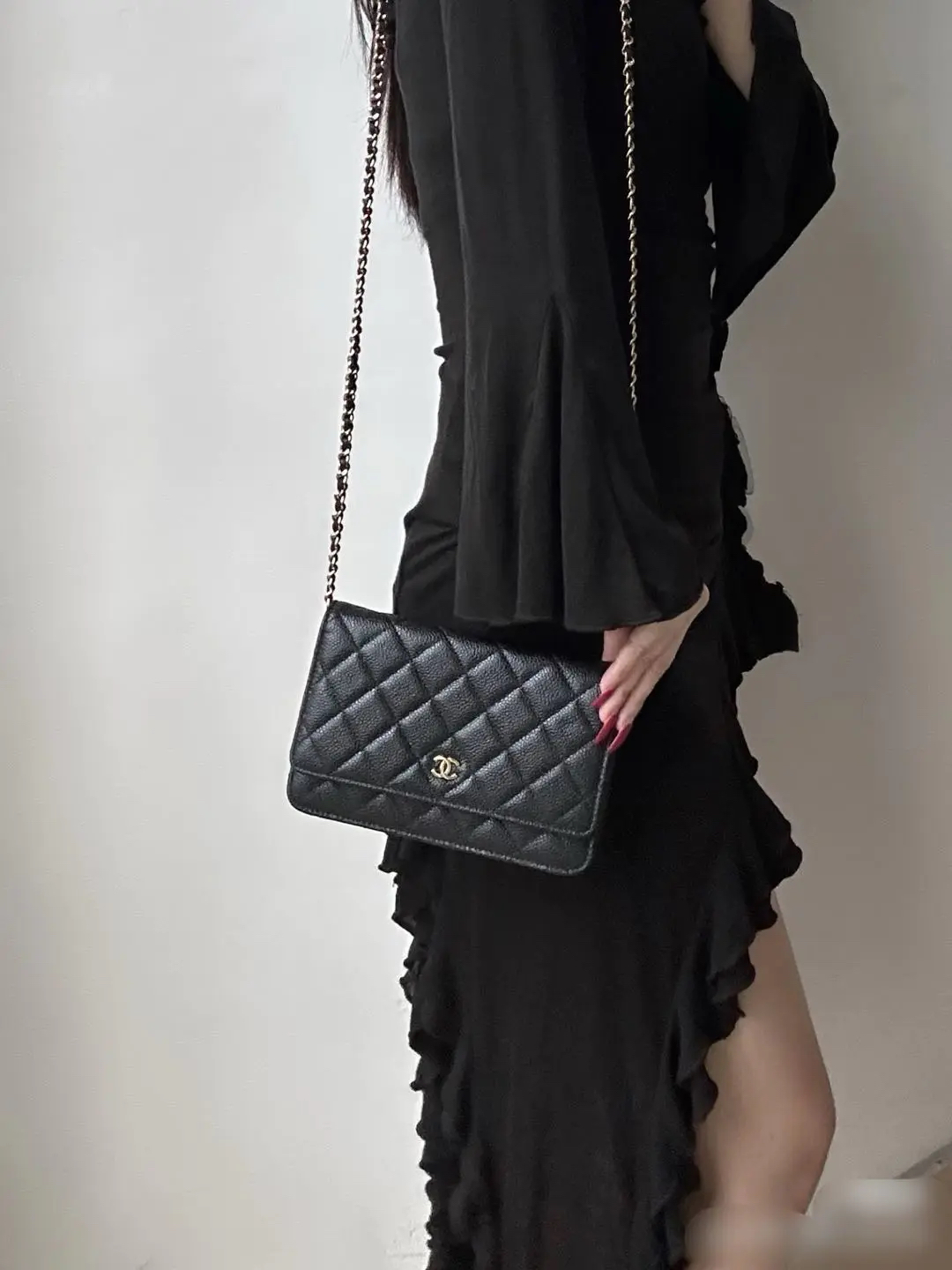 【商品详情】 正品二手 Chanel 黑金 woc 荔枝纹牛皮 链条包🖤 98新 19*12 芯片款。黑金经典 耐磨抗造