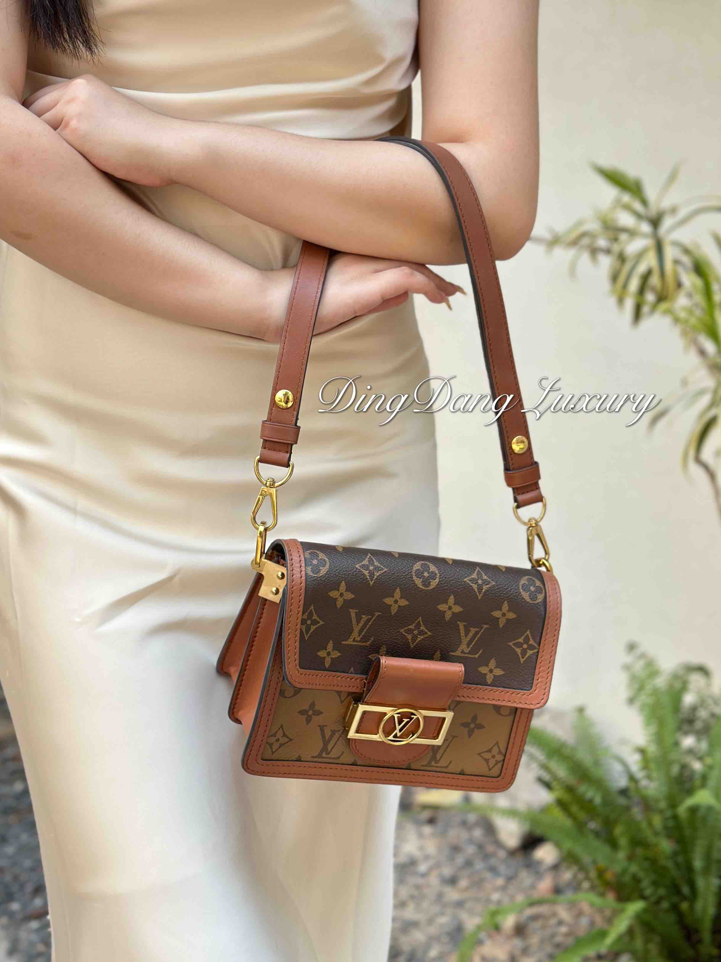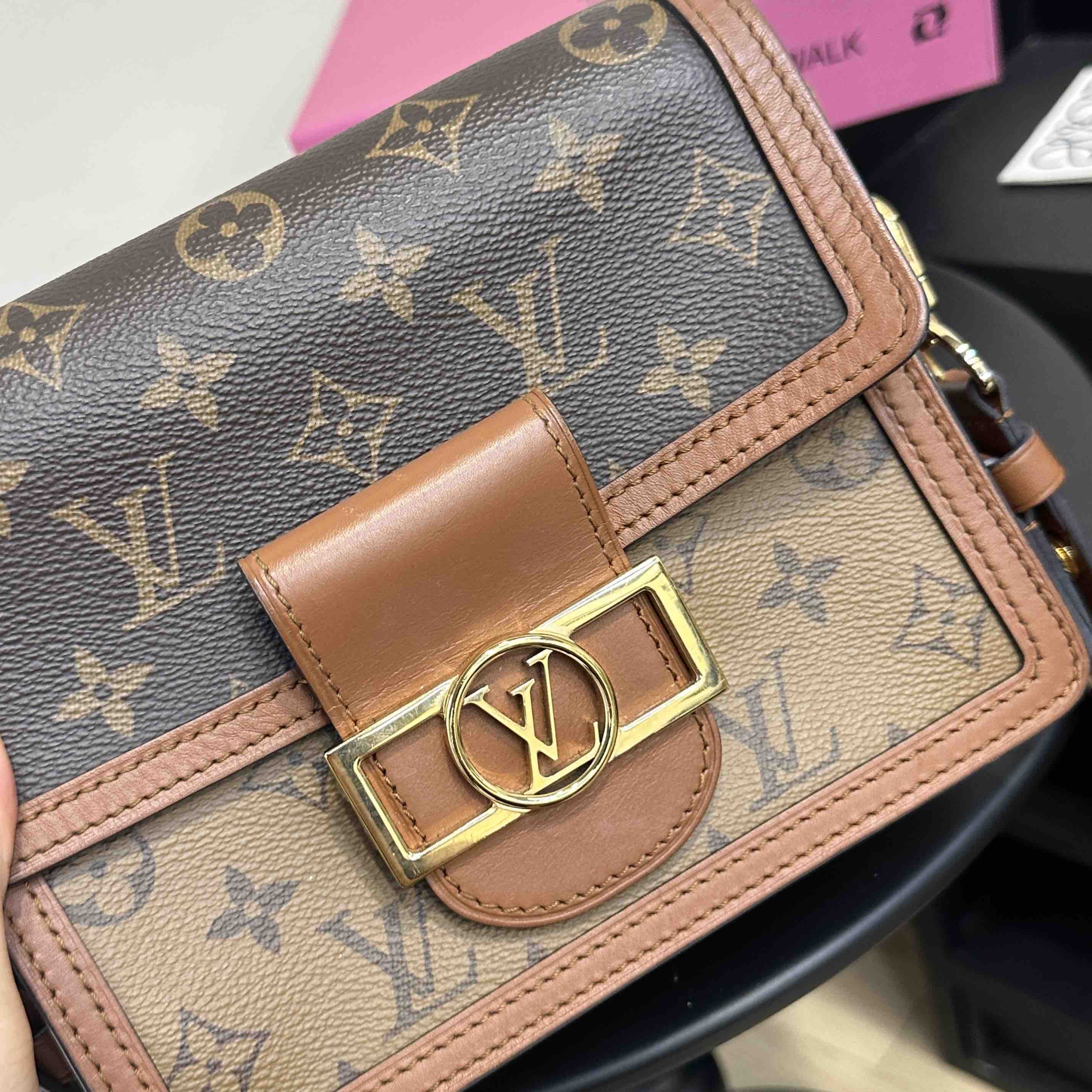【商品描述】正品二手 Lv Dauphine 达芙妮 双色老花 小号 斜挎包👜95 20*15 配件:肩带 发票 卡片。包身正常使用感 logo五金轻微划痕