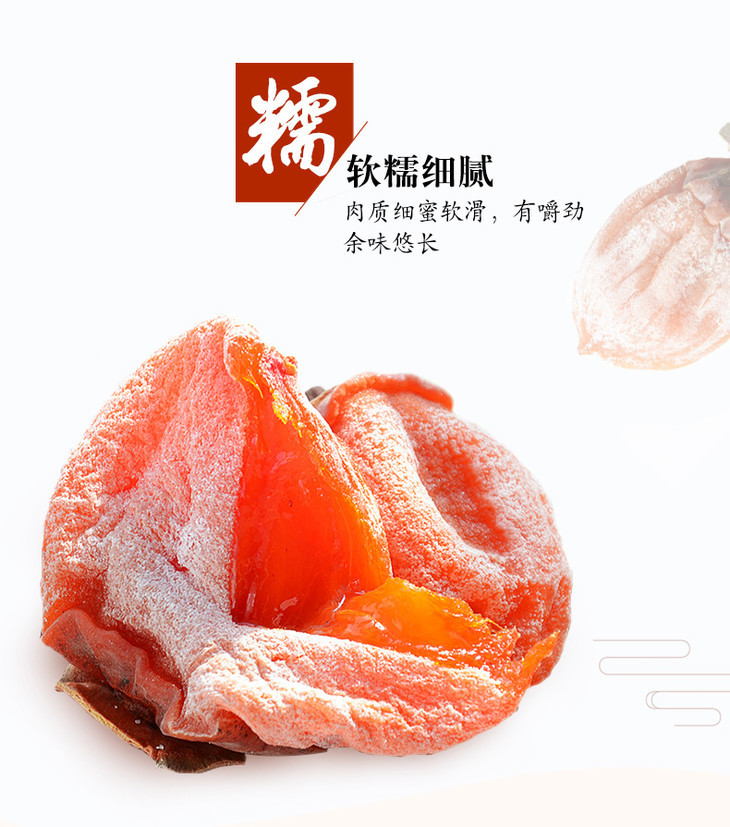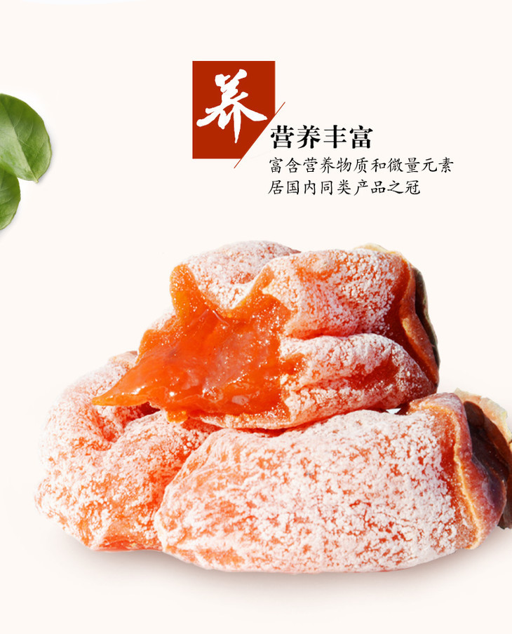 5.柿饼可能存在一些黑色的小颗粒,这不是发霉变质,而是果肉中鞣酸的天然沉淀,以及种子残留的黑色种皮,属于正常现象,请放心食用。