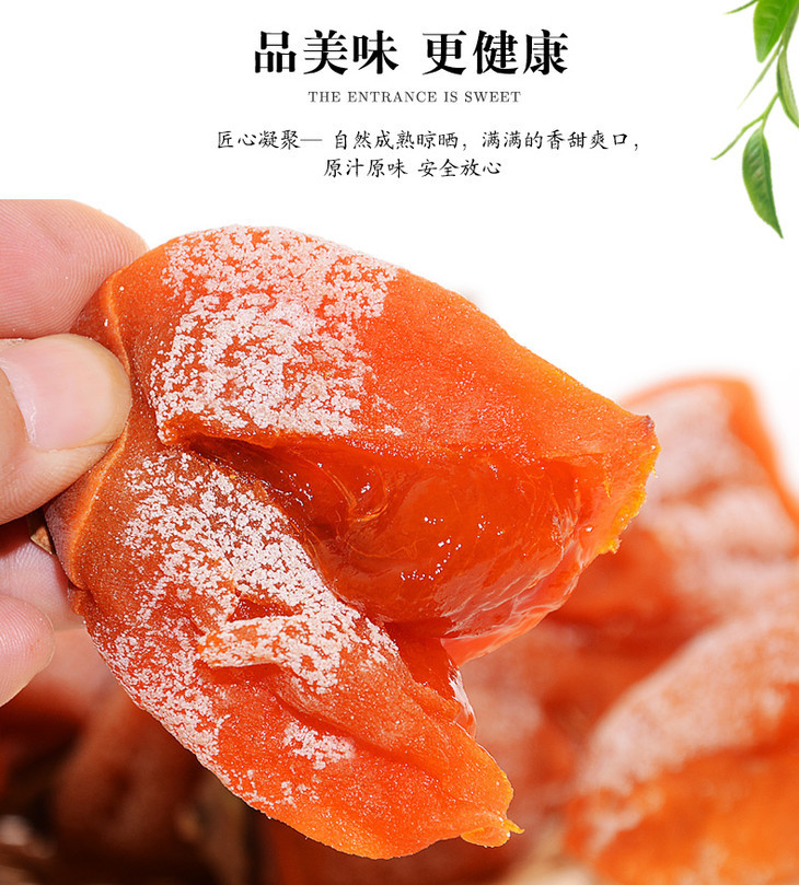 1.柿饼产出早期,产地气温较暖,柿饼的白霜较薄,呈微霜状态,甜度无区别,介意慎拍!