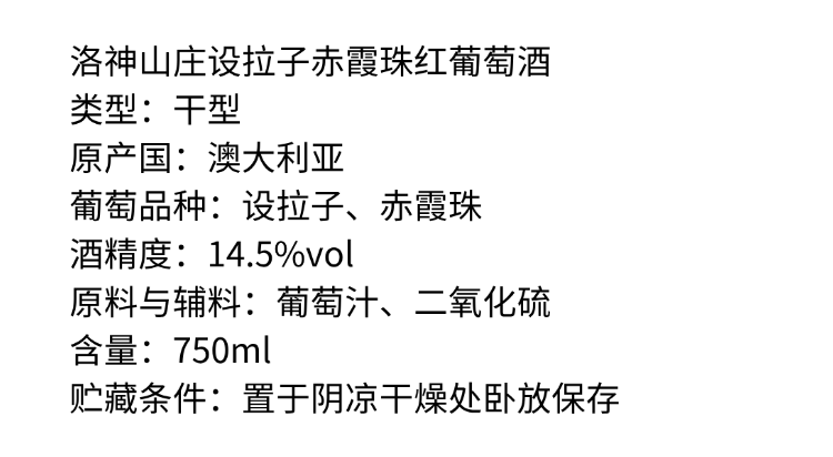 奔富洛神山庄 设拉子赤霞珠红葡萄酒 750ml