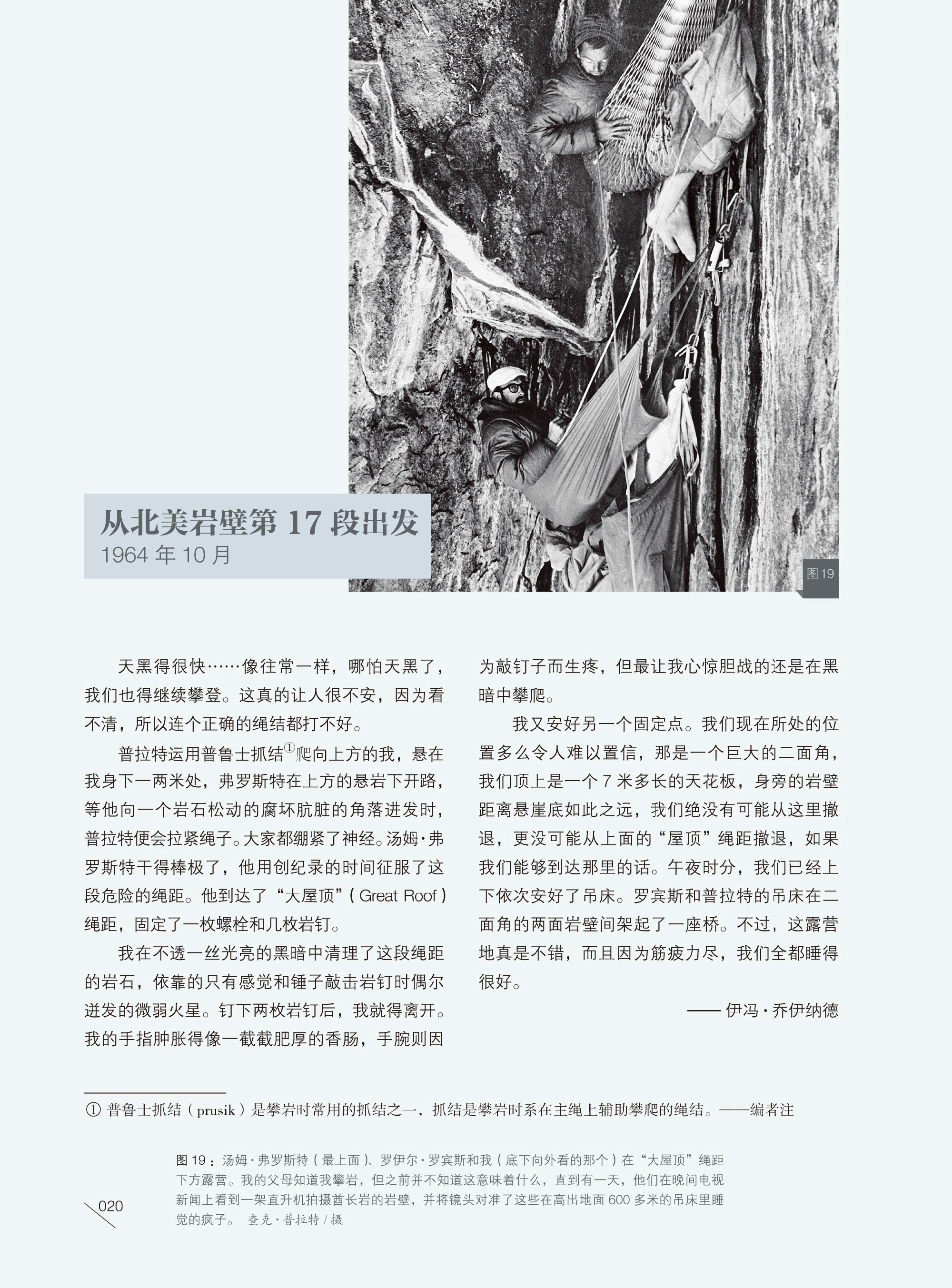 20多岁的乔伊纳德因为爱上了攀岩而自己制造工具,从此,一个用身体去拥抱壮丽自然的时代开始了。与他相比,今天20多岁的年青一代则过于老成,为了50岁后的平稳生活而拼死努力着,就算走进大自然,除了感受逃离,再也无法做什么。而乔伊纳德则从自然的拥抱里体悟出对自然的热爱,他创立公司,只做对自然扰动小的产品,始终走在自己设计的道路上,终于成功。人们艳羡,于是也拿起装备,走出一段纯粹并有责任感的人生,体会当年那个紧紧拥抱在岩壁上的20多岁的年轻人看到的星空。