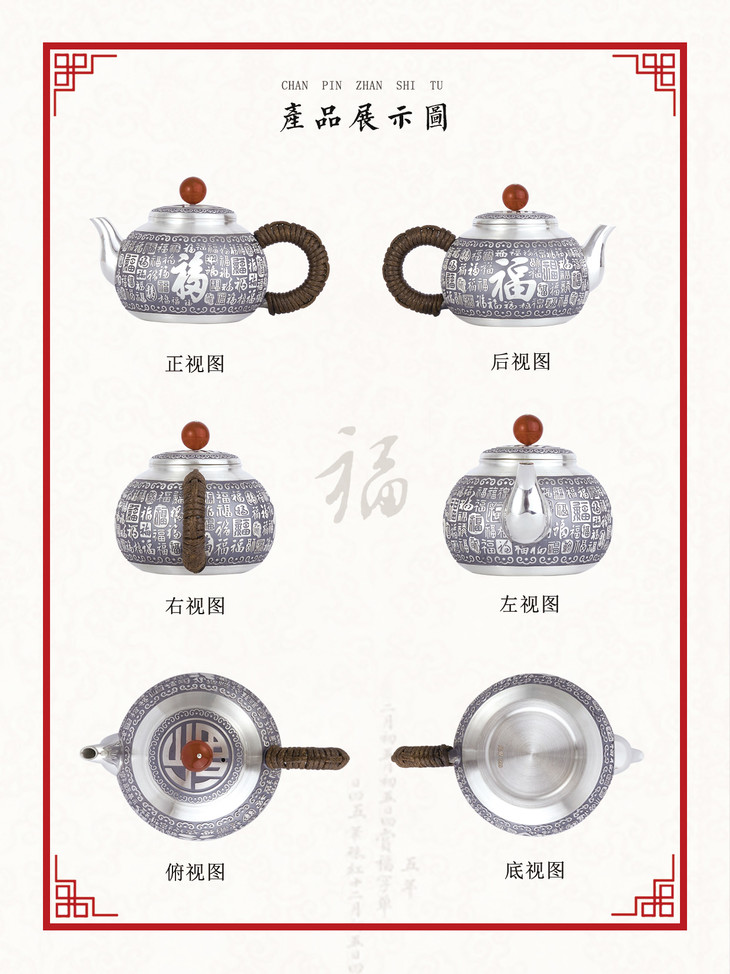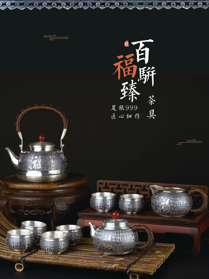 百福骈臻-纯银茶壶套装摆件【BXYL0020609】2010