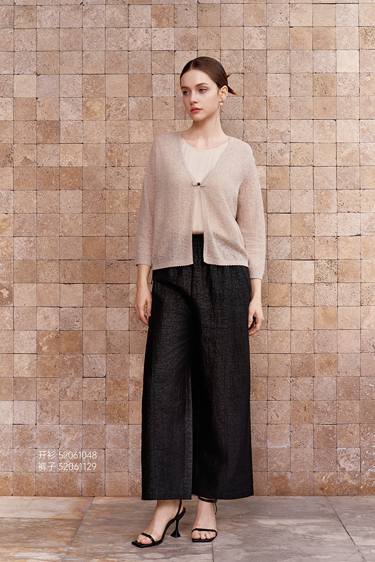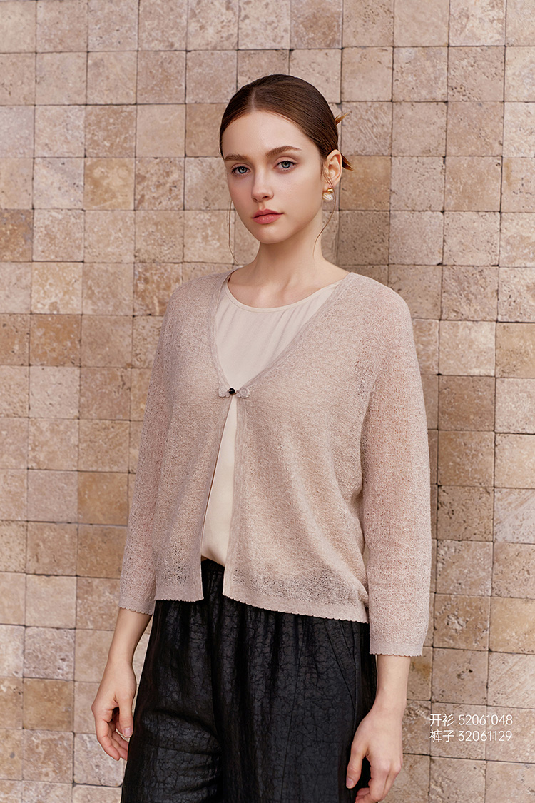 【一粒扣棉麻开衫】26年春夏新品女士V领镂空款针织小外套