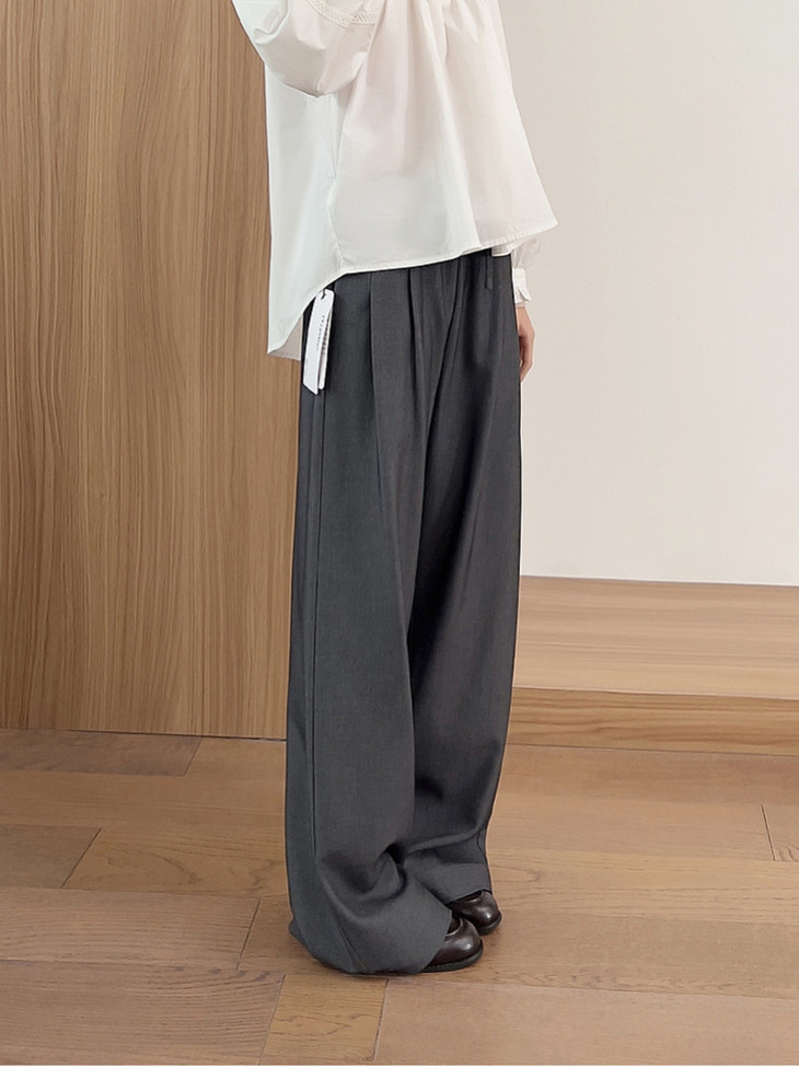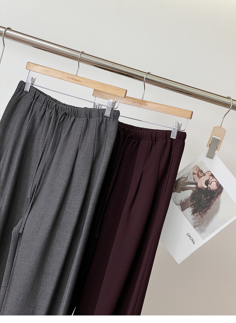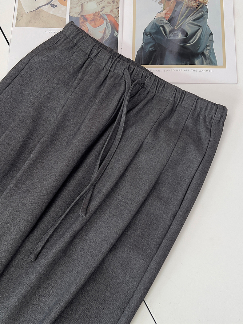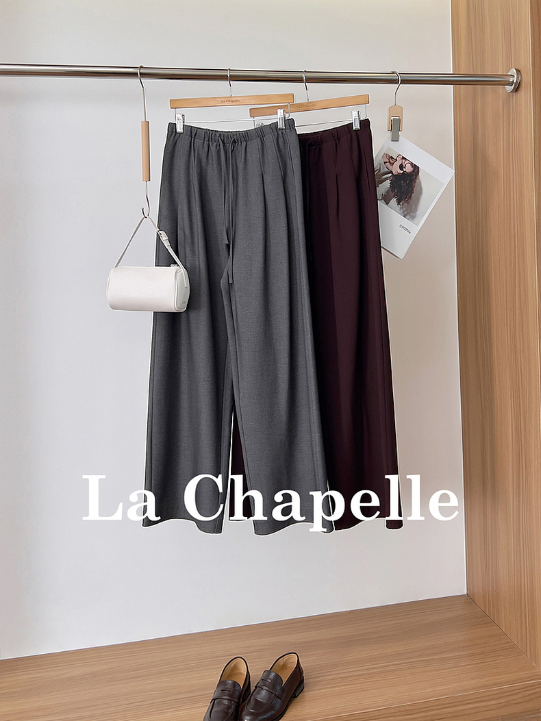 专柜实拍【极简纸片人】拉夏贝尔/La Chapelle绵羊毛高质感!垂感松弛有型高腰系带直筒休闲西裤★