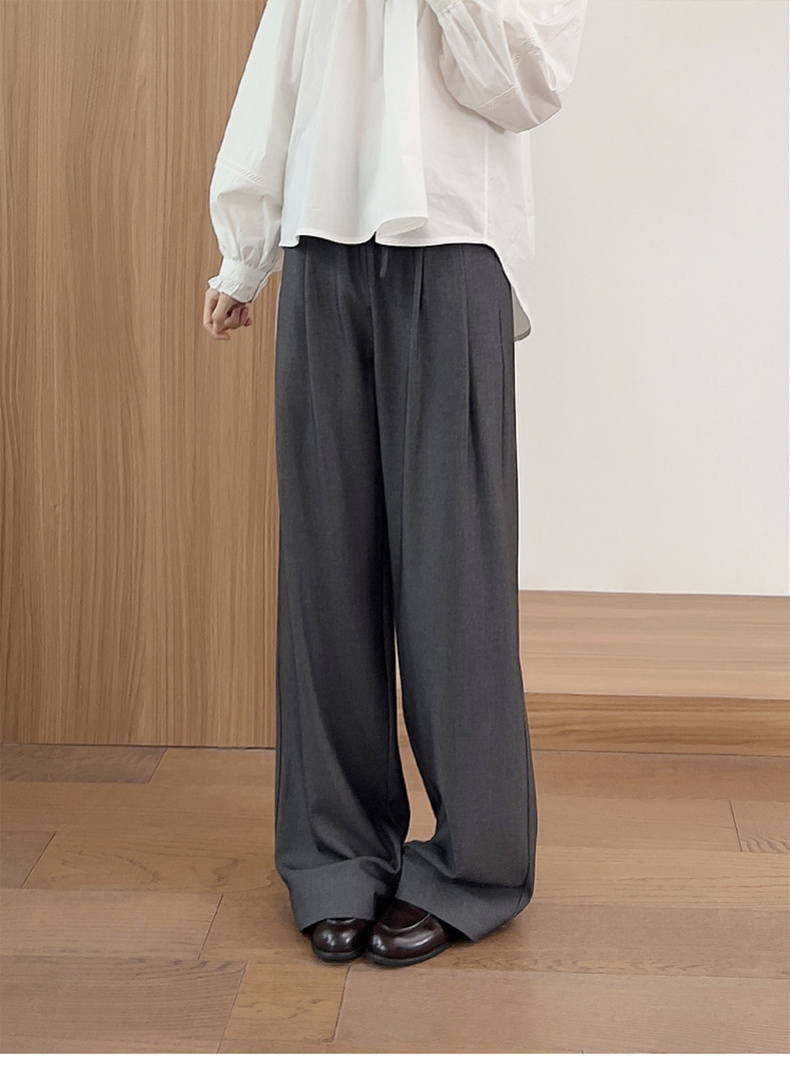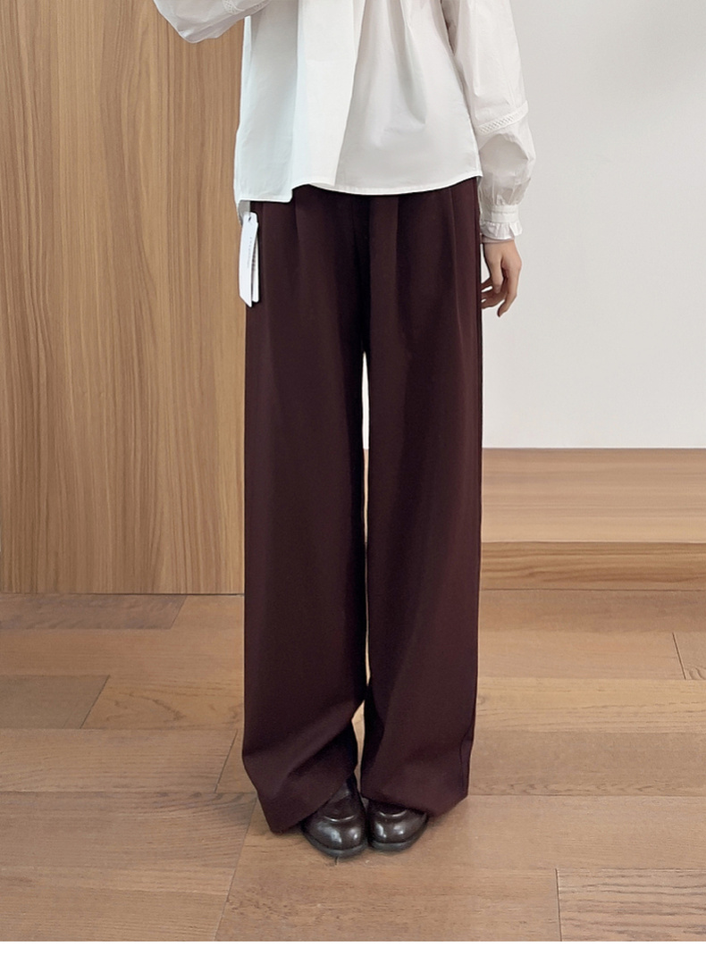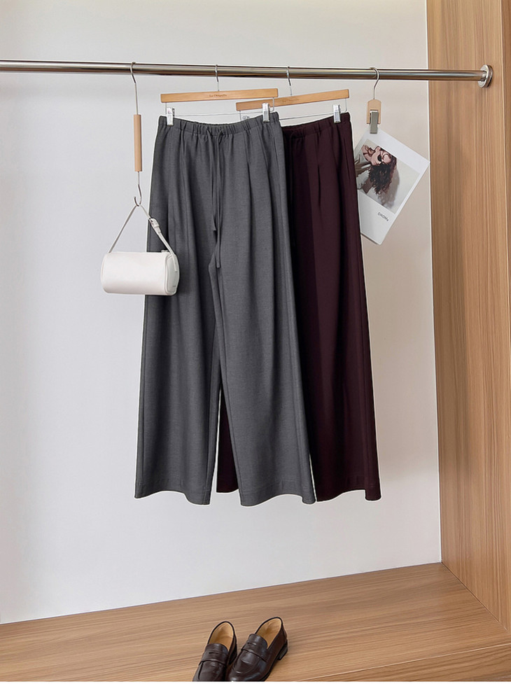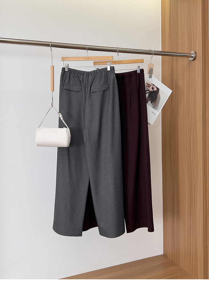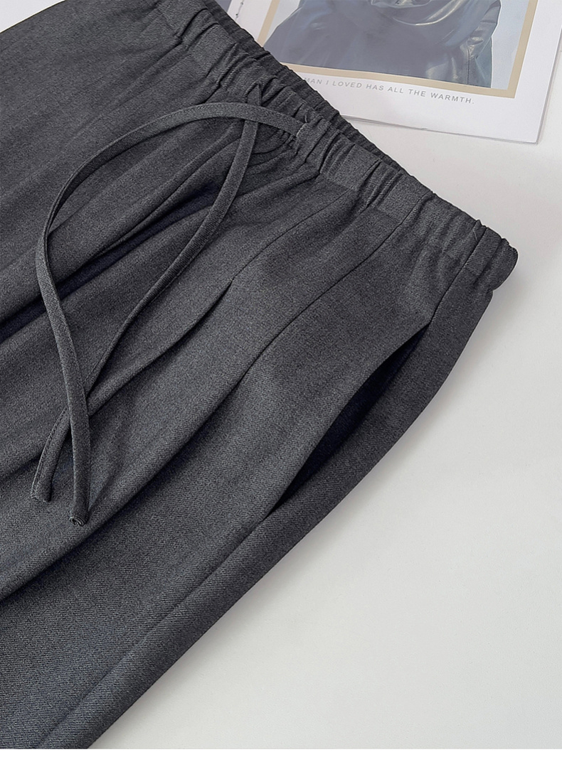 专柜实拍【极简纸片人】拉夏贝尔/La Chapelle绵羊毛高质感!垂感松弛有型高腰系带直筒休闲西裤★