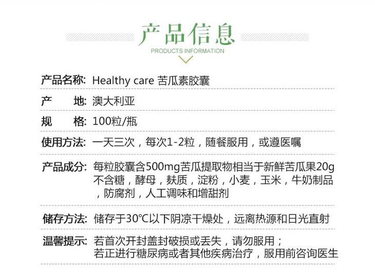 【保税仓】Healthy Care 苦瓜胶囊 100s 商品图0