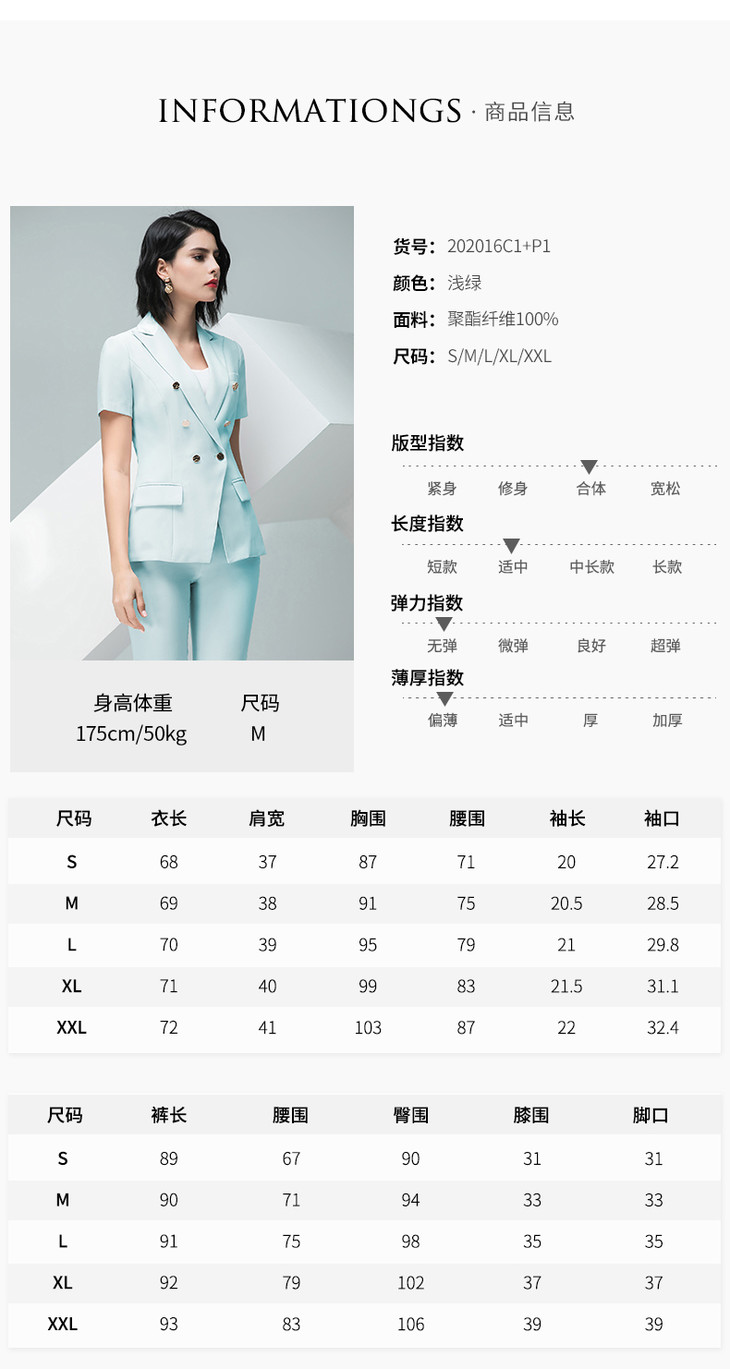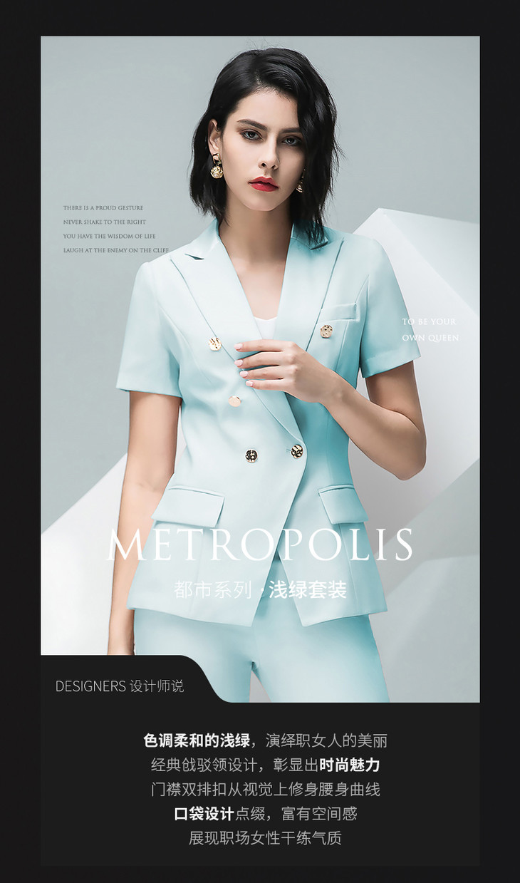 IWY/浅绿色短袖西服长裤套装C10216 P10216