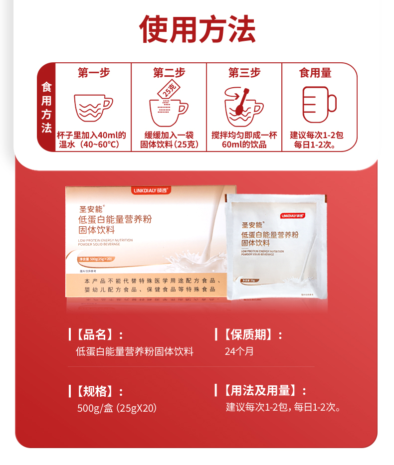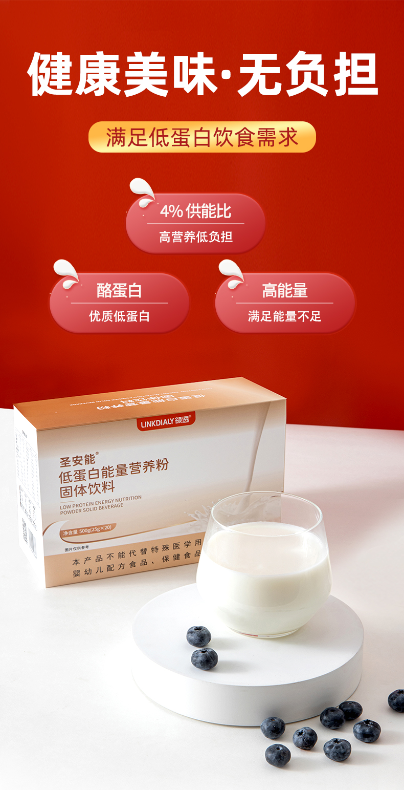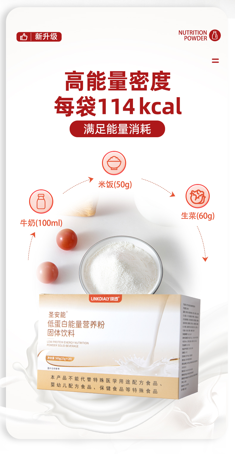 领透圣安能低蛋白能量营养粉固体饮料 500g(25g*20)/盒 LT