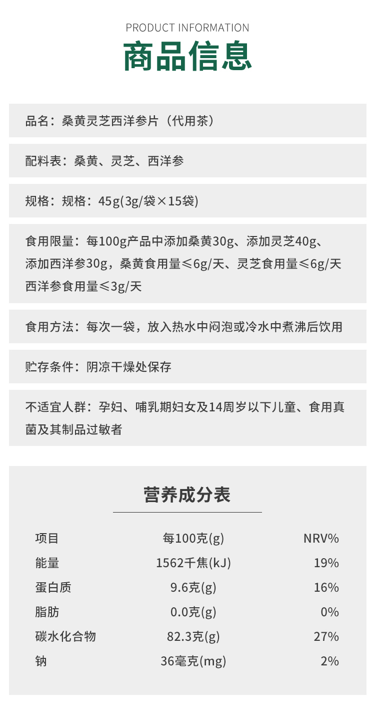 黄之皇 桑黄灵芝西洋参片 45g 独立包装方便携带