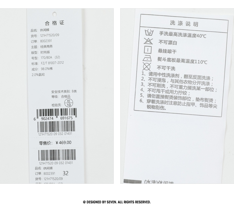【特价】柒牌男装梭织长裤秋冬新款微弹直筒青年商务休闲潮流百搭裤子 121H71520
