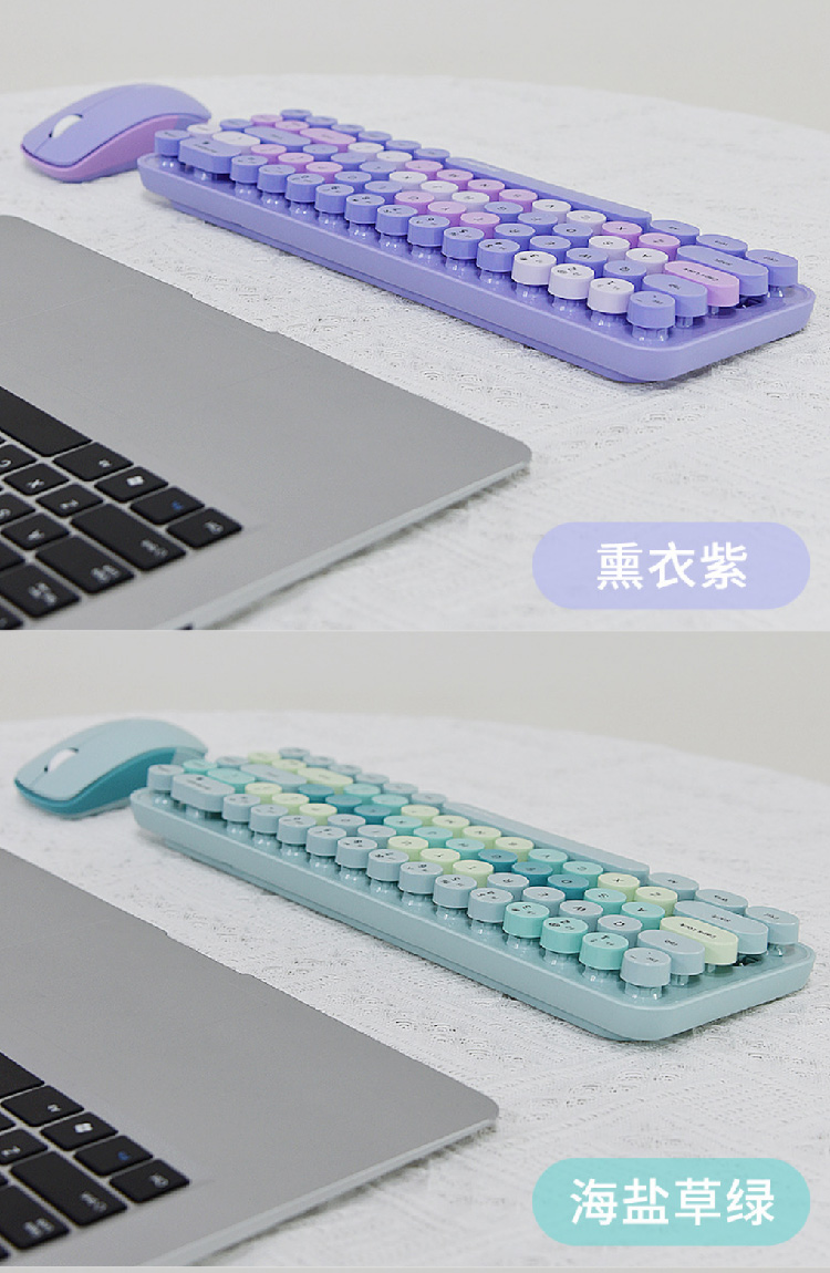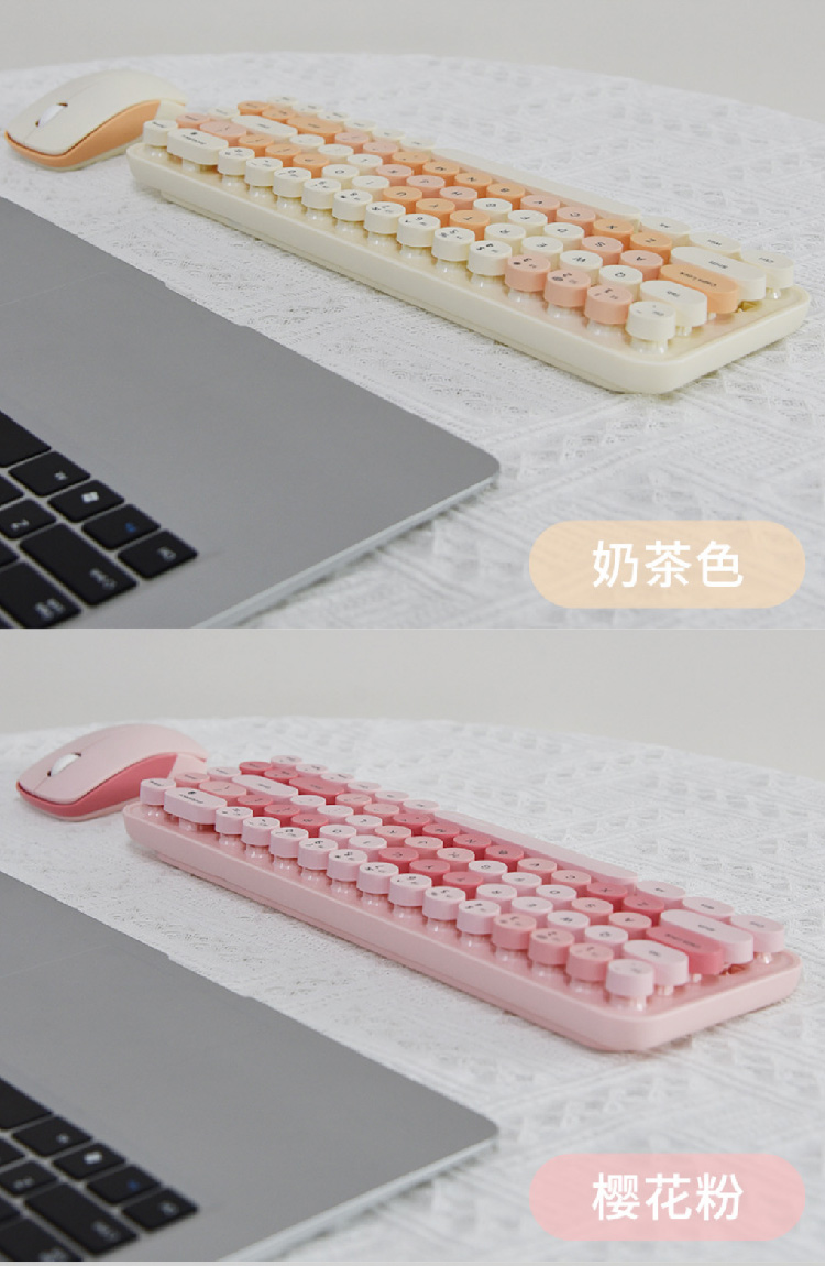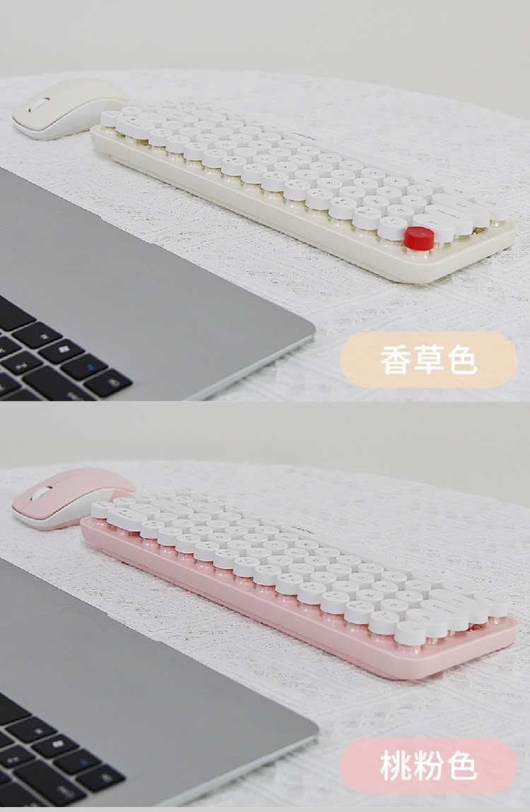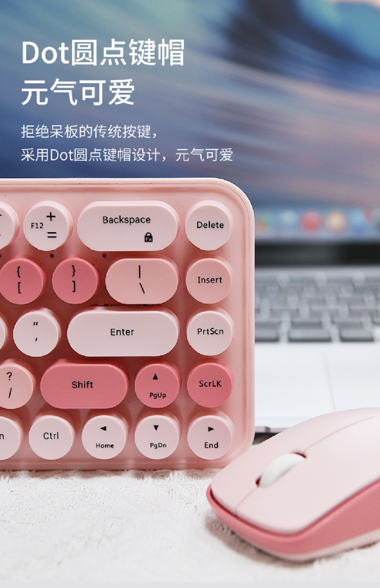 【摩天手键盘套装】2024新款键盘豆粉圆点2.4G 无线迷你键盘鼠标套装笔记本台式机通用