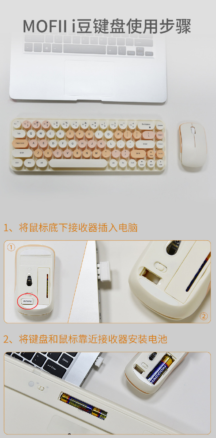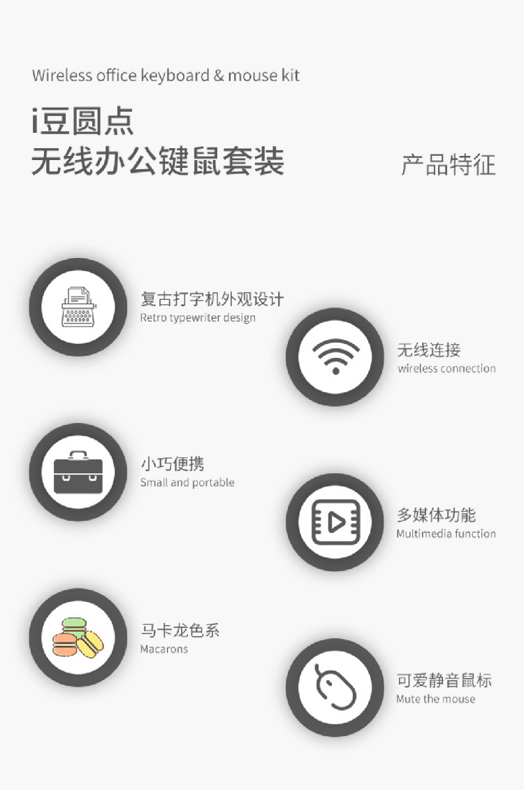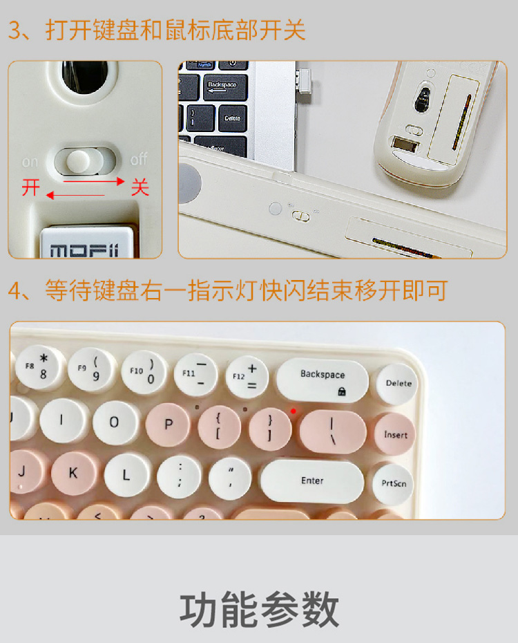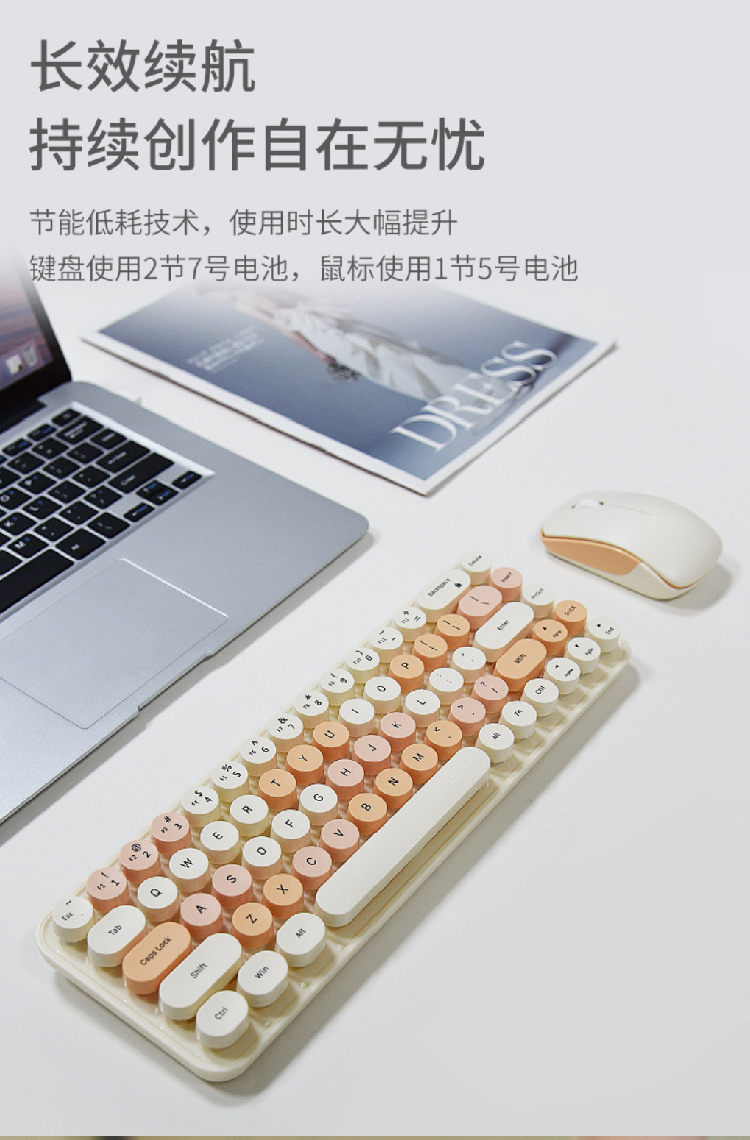 【摩天手键盘套装】2024新款键盘豆粉圆点2.4G 无线迷你键盘鼠标套装笔记本台式机通用