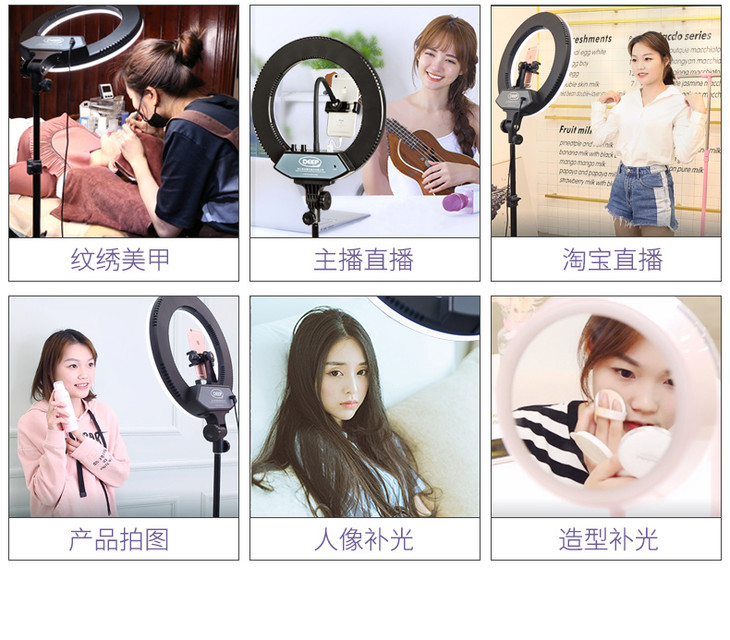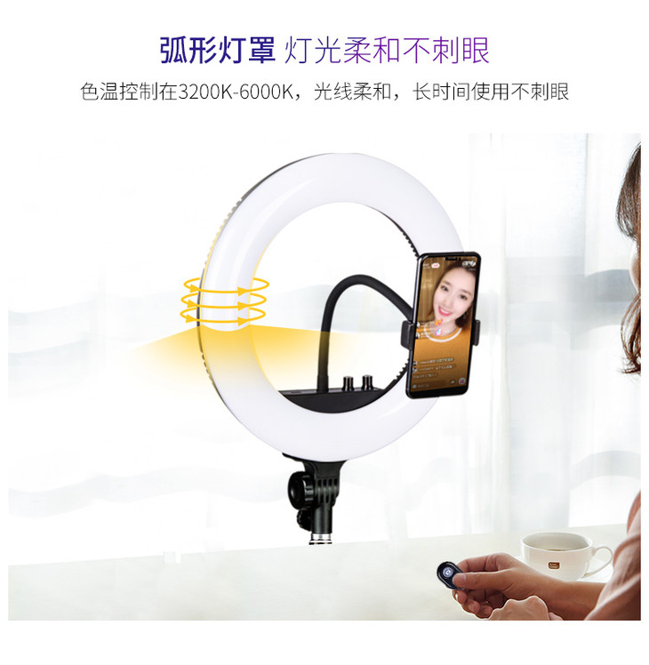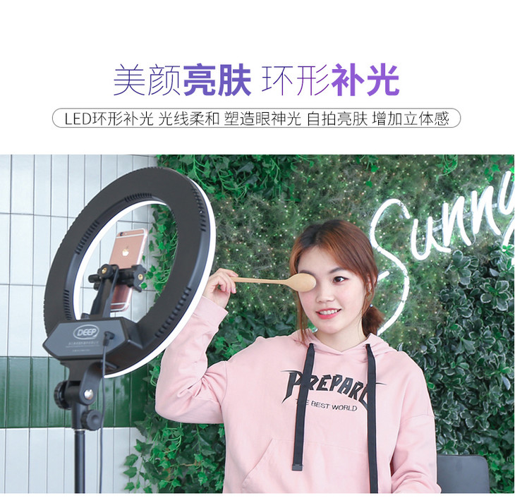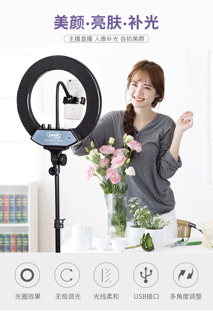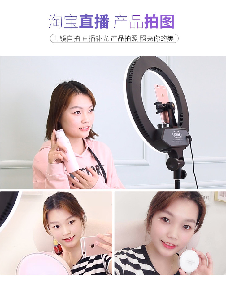 Deep 网红手机led环形自拍摄照直播支架打补光灯主播美颜嫩肤神器14英寸网红直播推荐