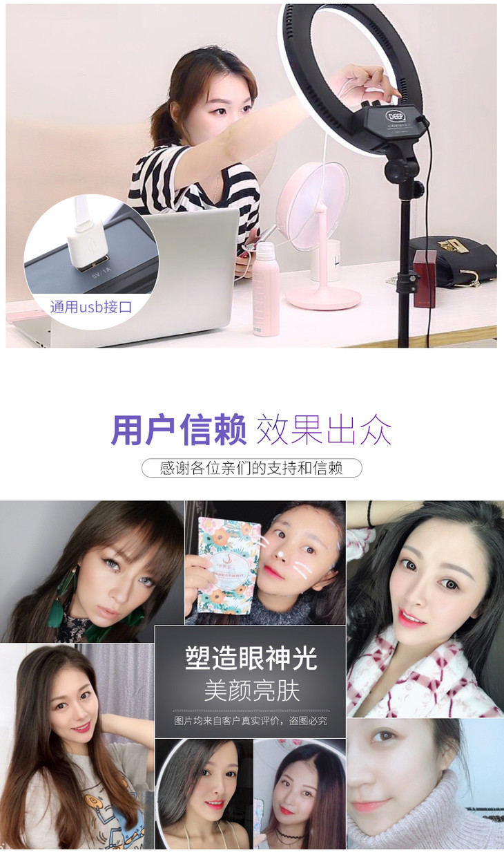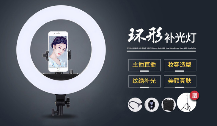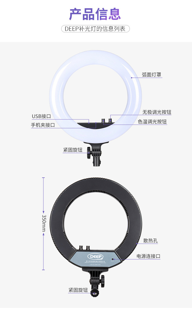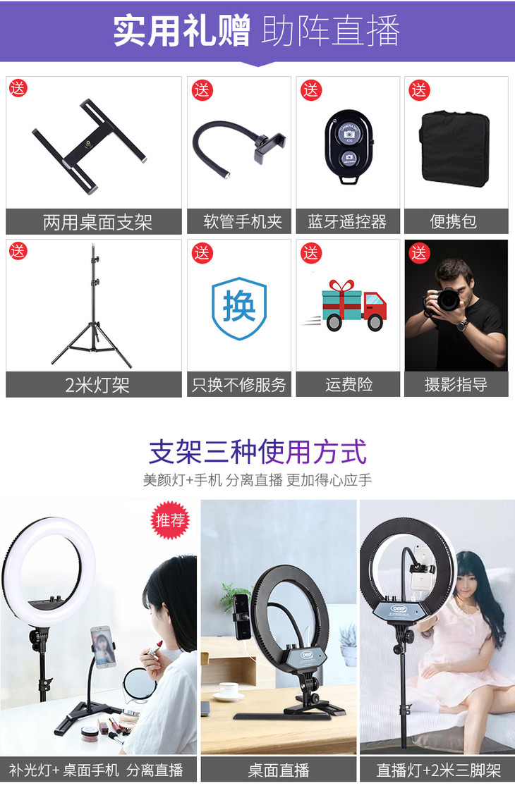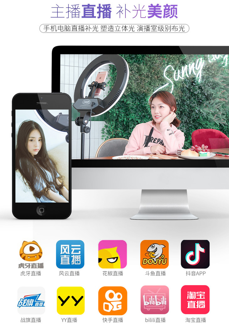 Deep 网红手机led环形自拍摄照直播支架打补光灯主播美颜嫩肤神器14英寸网红直播推荐