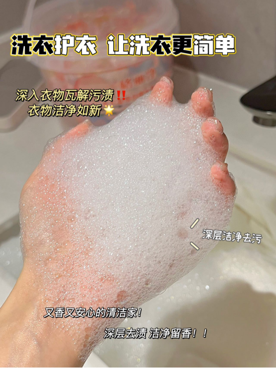 这个洗衣凝珠我反正是锁住了 清洗以后的衣服轻轻松松get少女伪体香 不能忍的就是衣服上面有汗味 或者洗着洗着就不好看了~ 🥰这个洗衣凝珠真是精致感满满 浓浓蜜桃香太好闻了 去污新配方,深层洁净 一颗洗衣凝珠的洁净效力是洗衣液的10倍 整体的香味也超级好闻🌿 而且留香时间也hin持久~ 用过洗衣凝珠你才知道多方便