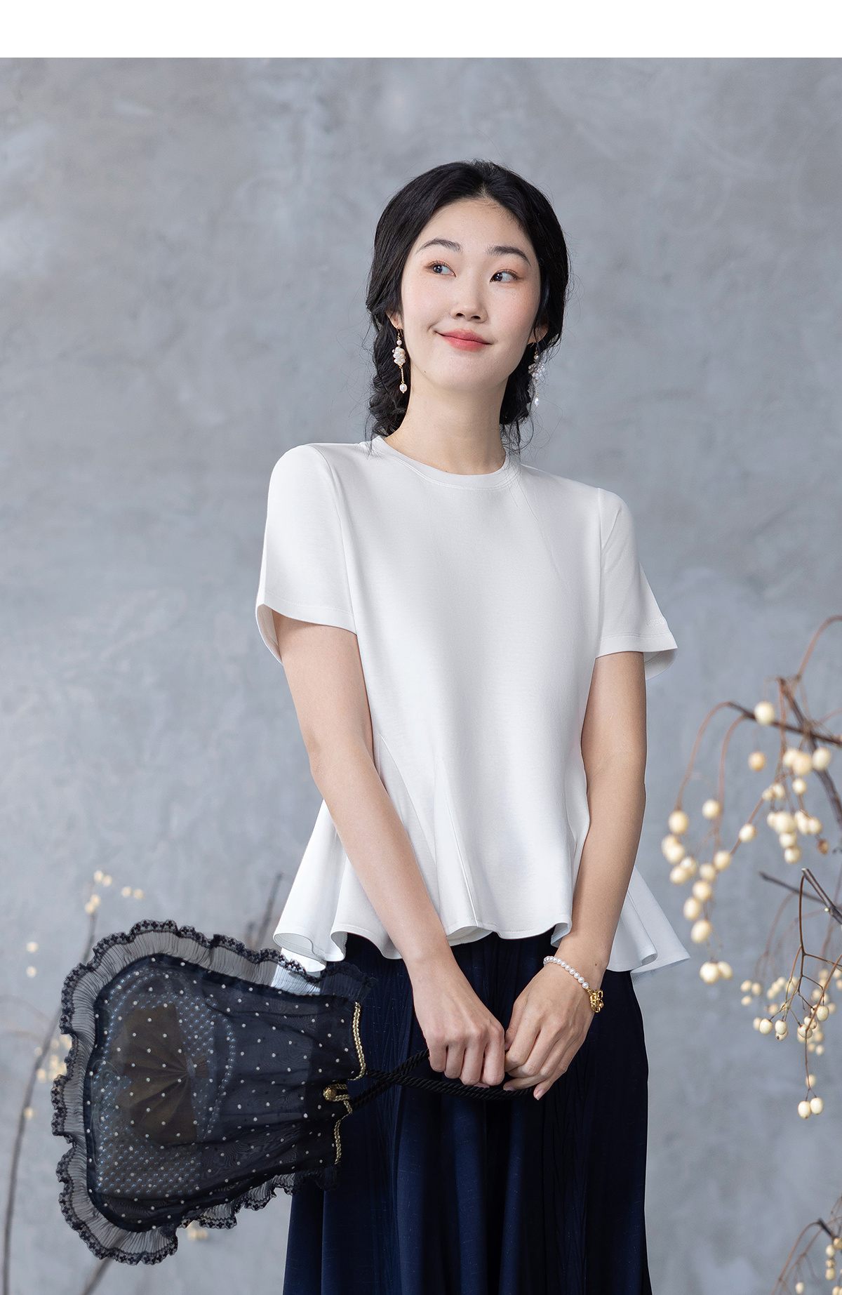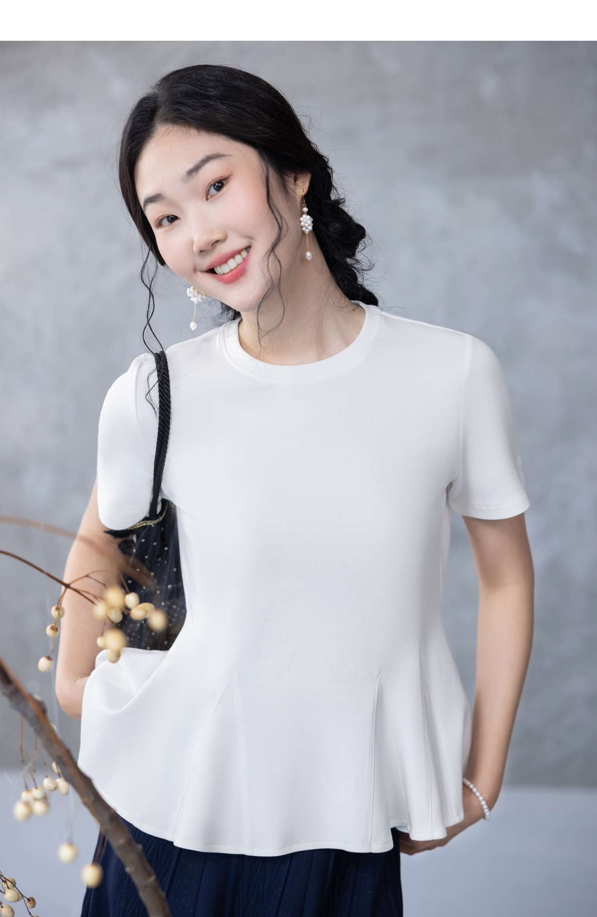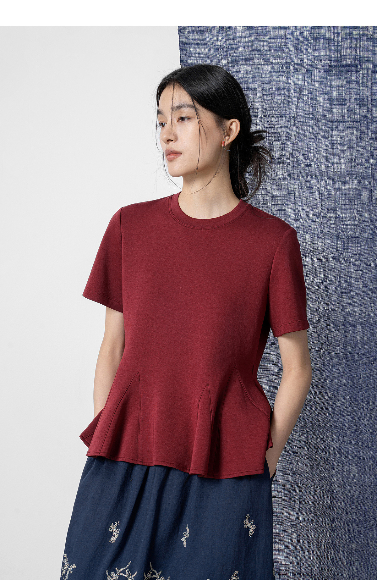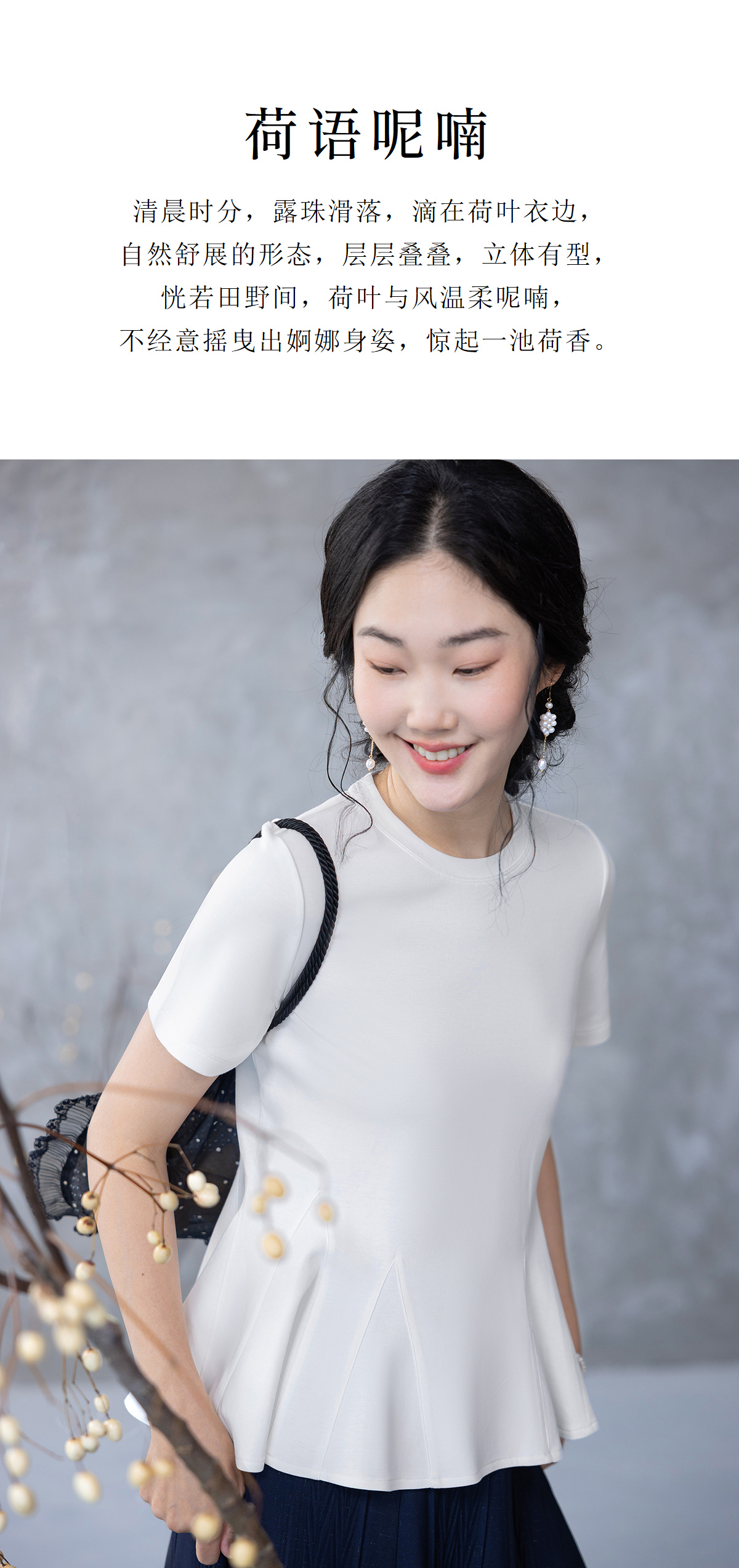 【林栖设计小店】(现货)莫代尔混纺T恤百搭多色荷叶边2025夏季新品短袖上衣女1952134