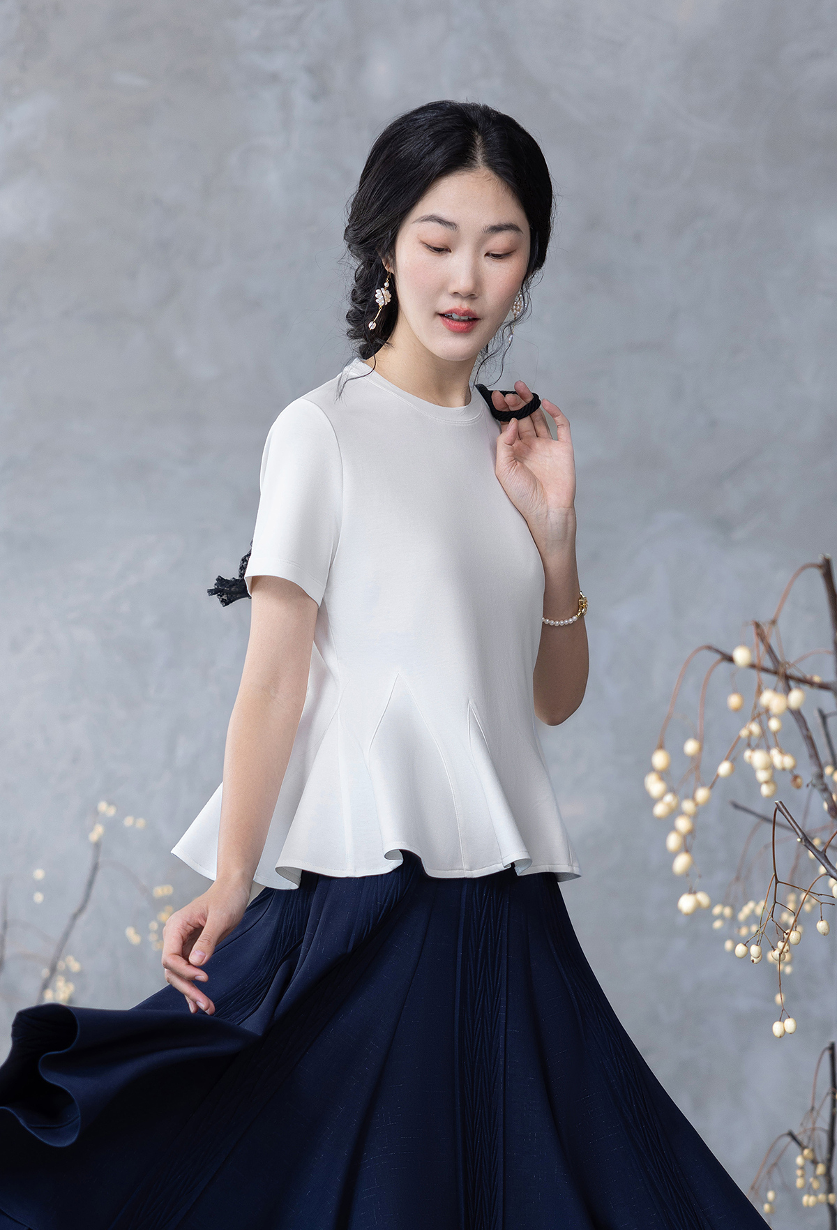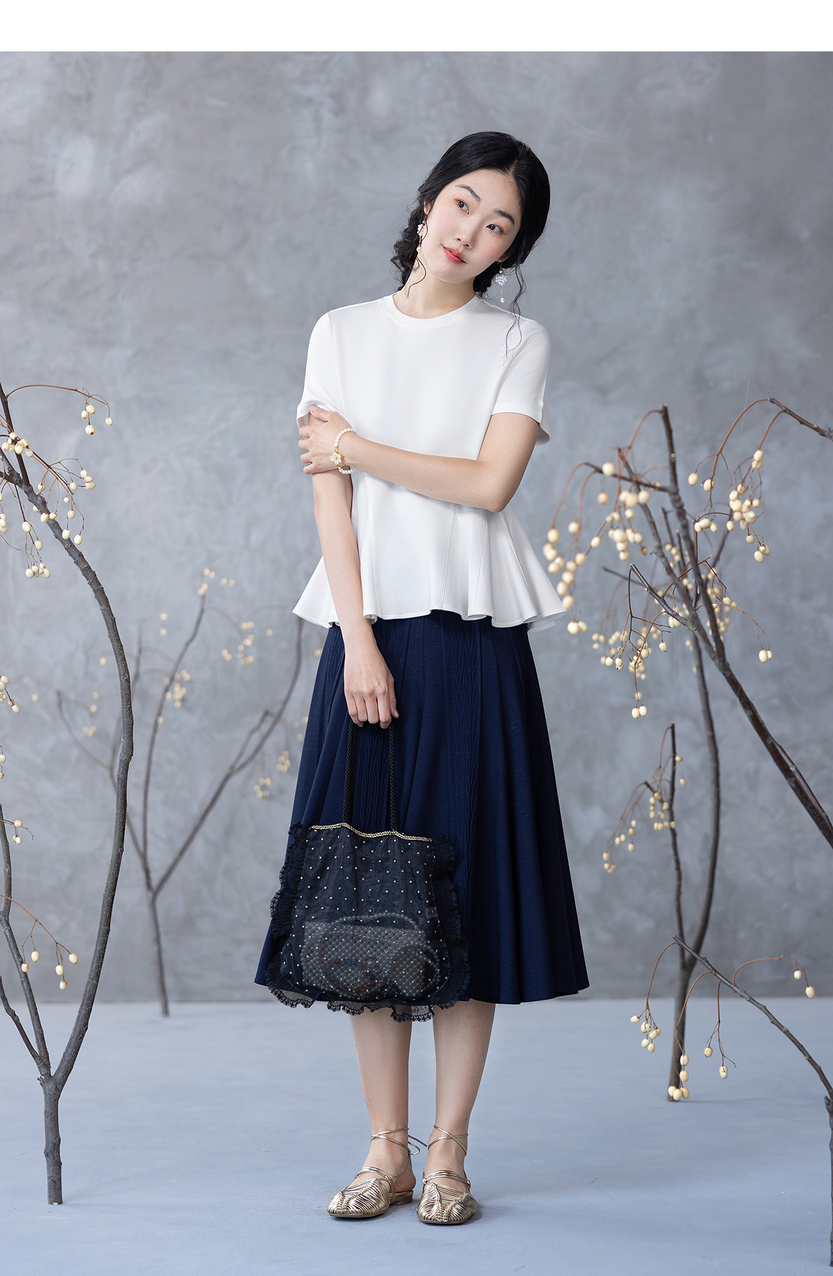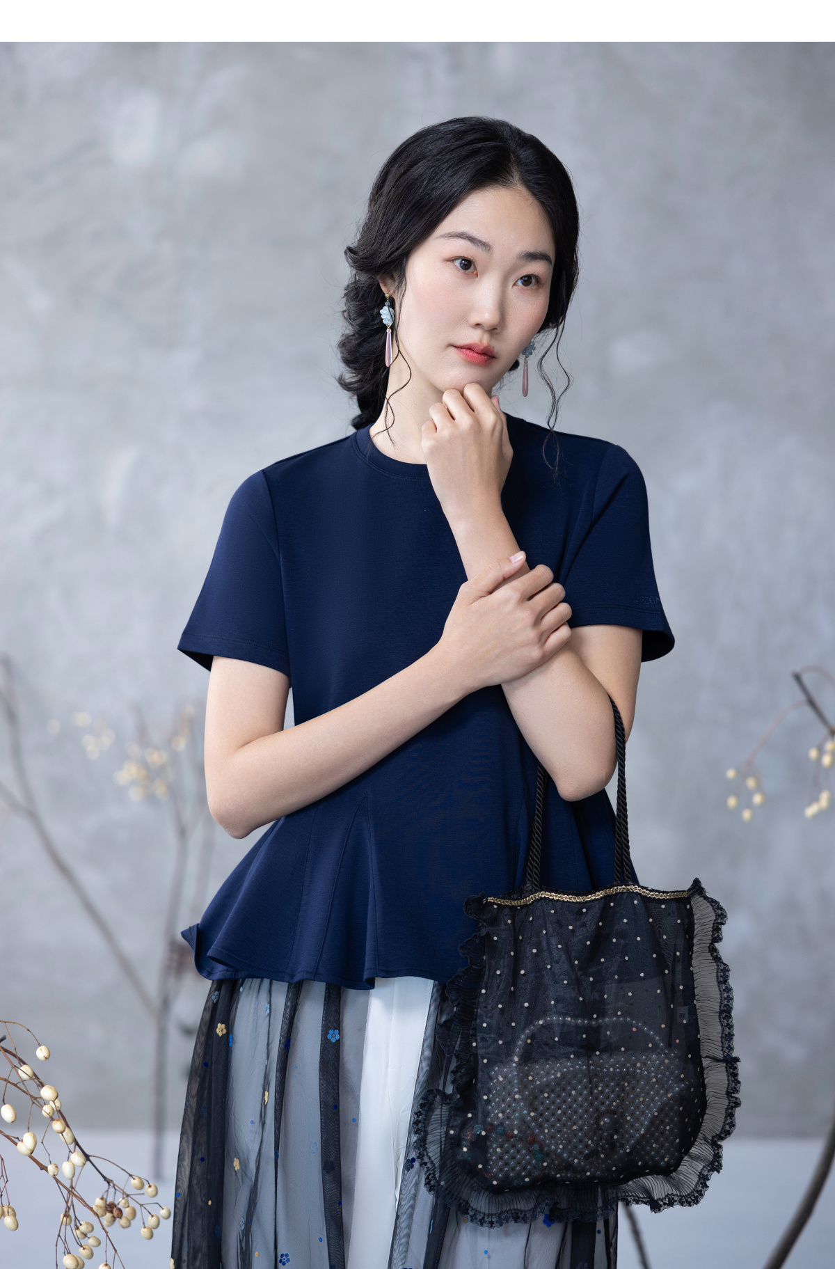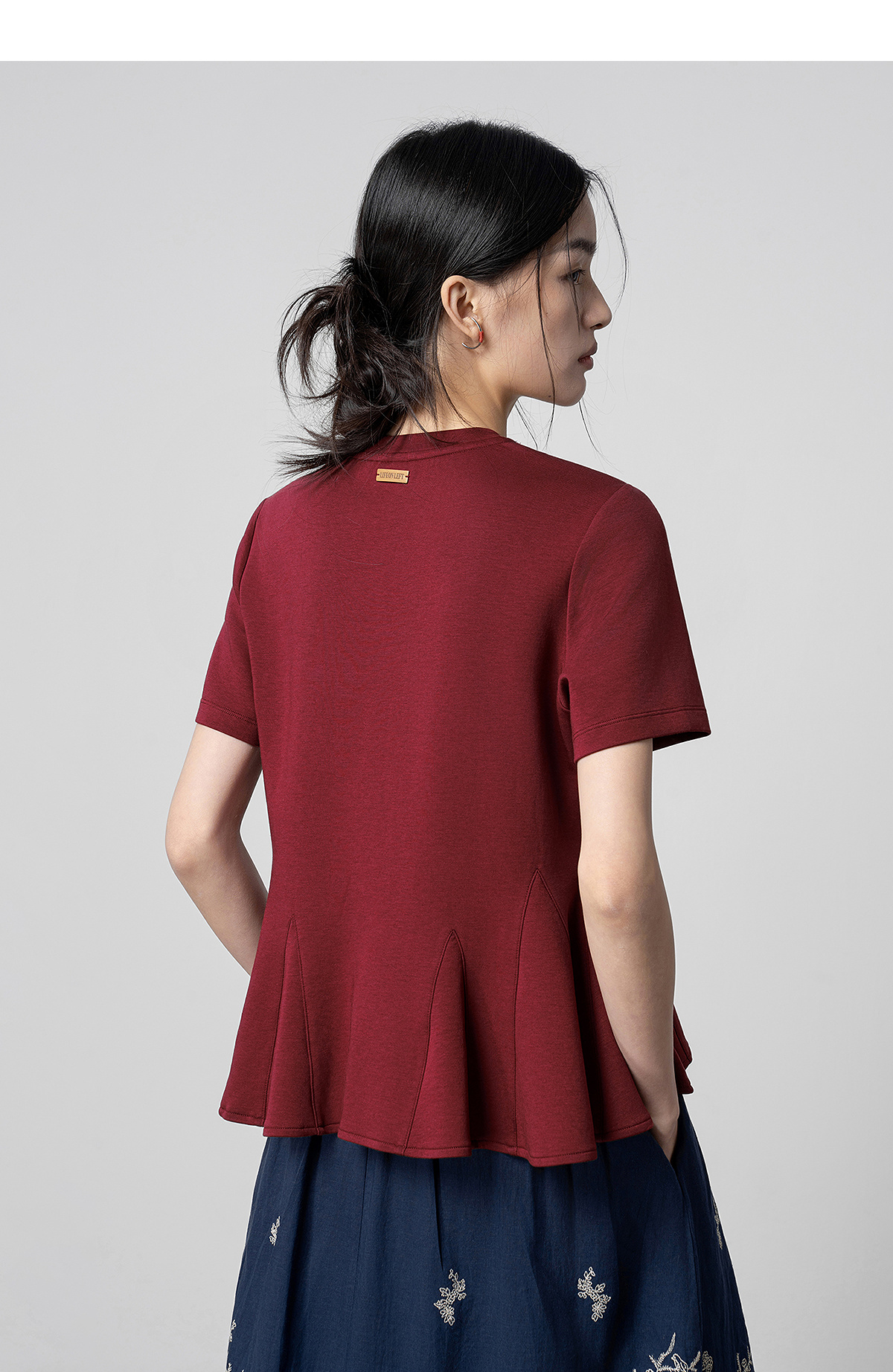 【林栖设计小店】(现货)莫代尔混纺T恤百搭多色荷叶边2025夏季新品短袖上衣女1952134