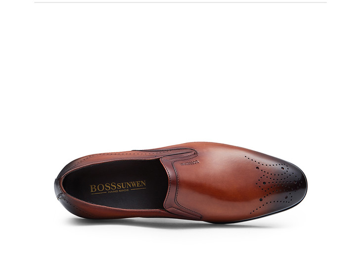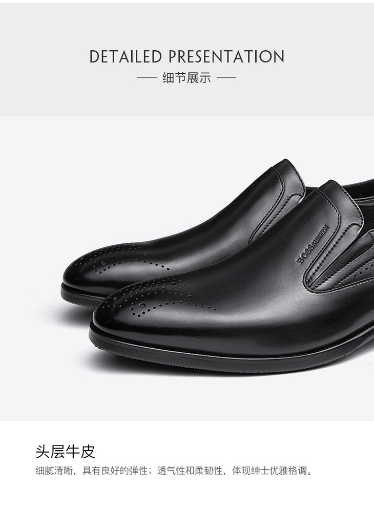 博斯绅威男鞋复古擦色商务休闲皮鞋舒适套脚德比鞋意大利韩版百搭B31DAS057
