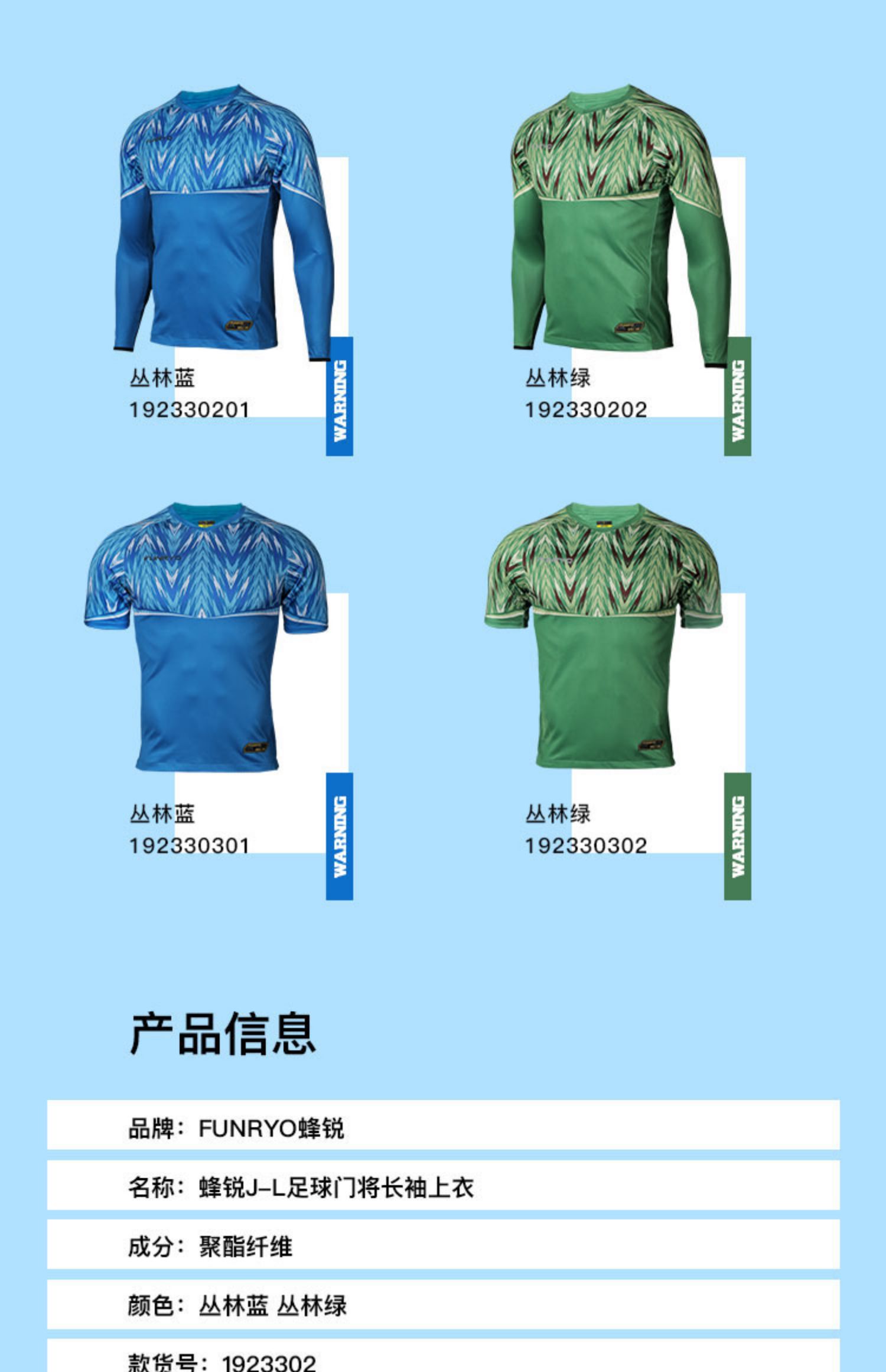 Funryo蜂锐J-L系列足球门将球服守门员长袖短袖