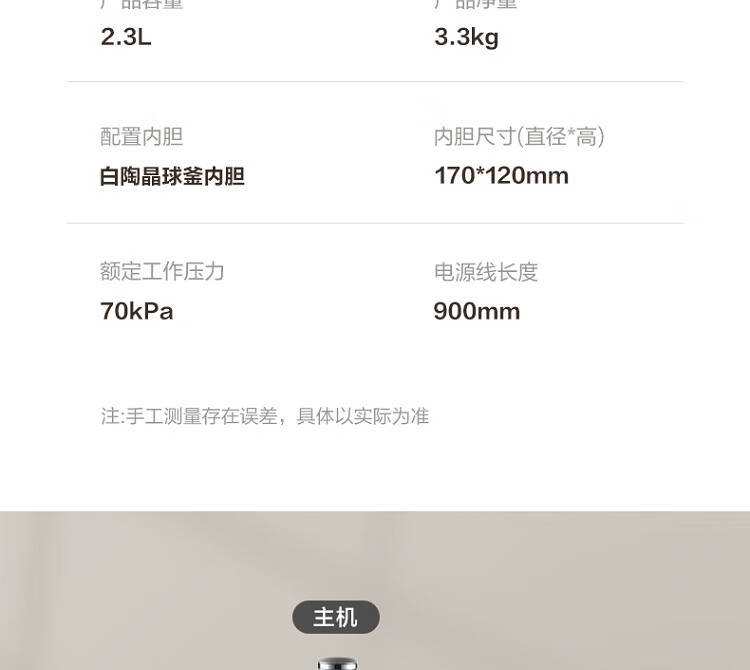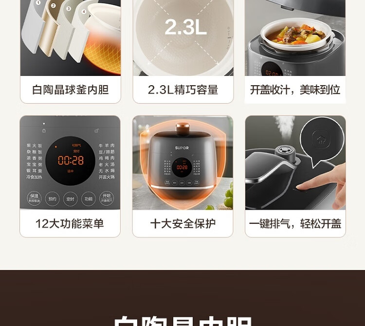 苏泊尔球釜白陶晶内胆 高颜值 13大功能 3种口感 24小时预约 2.3L电压力锅SY-23FC27Q
