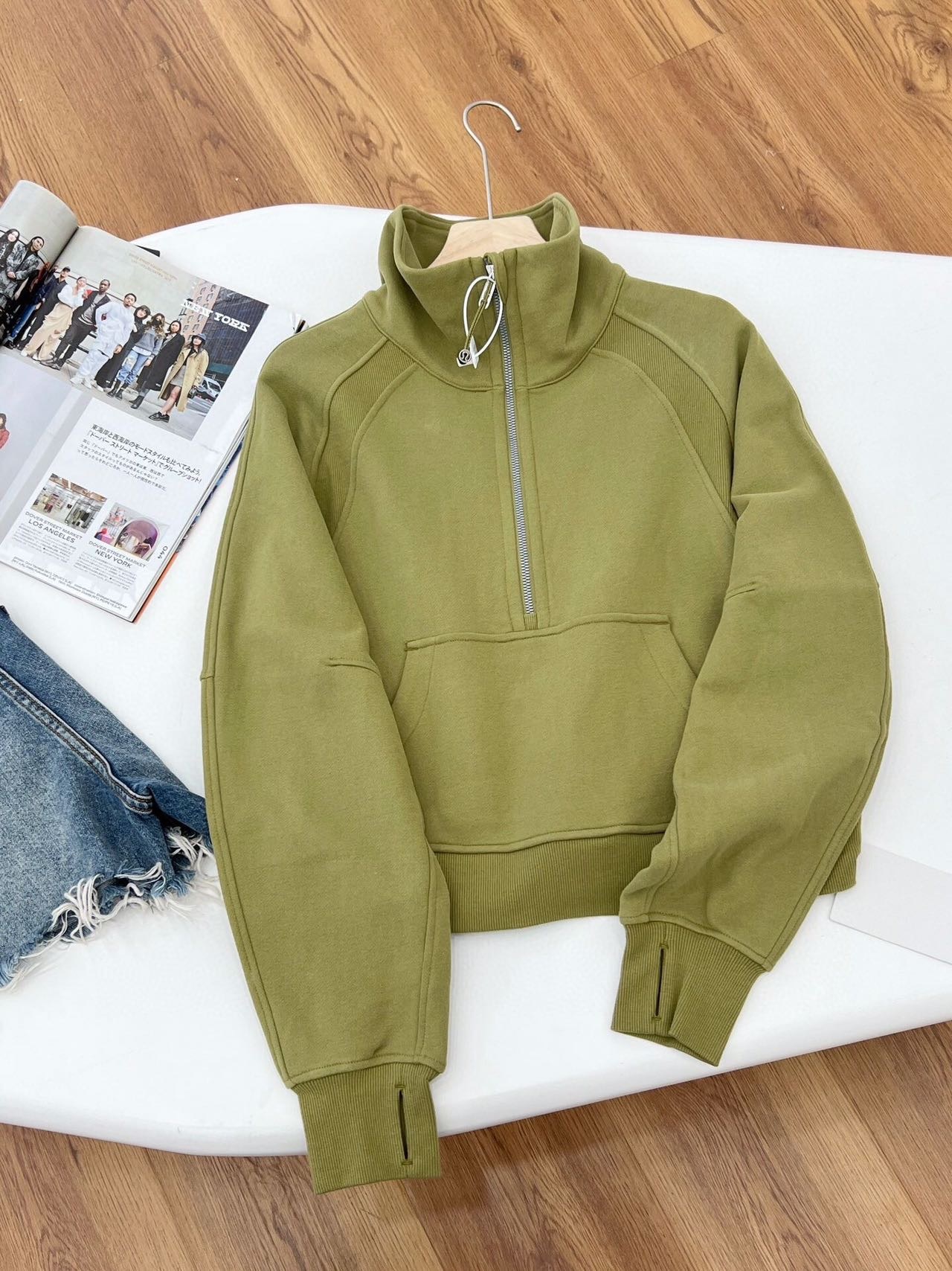 半拉链沼泽绿、牛仔蓝、浅驼色实拍!