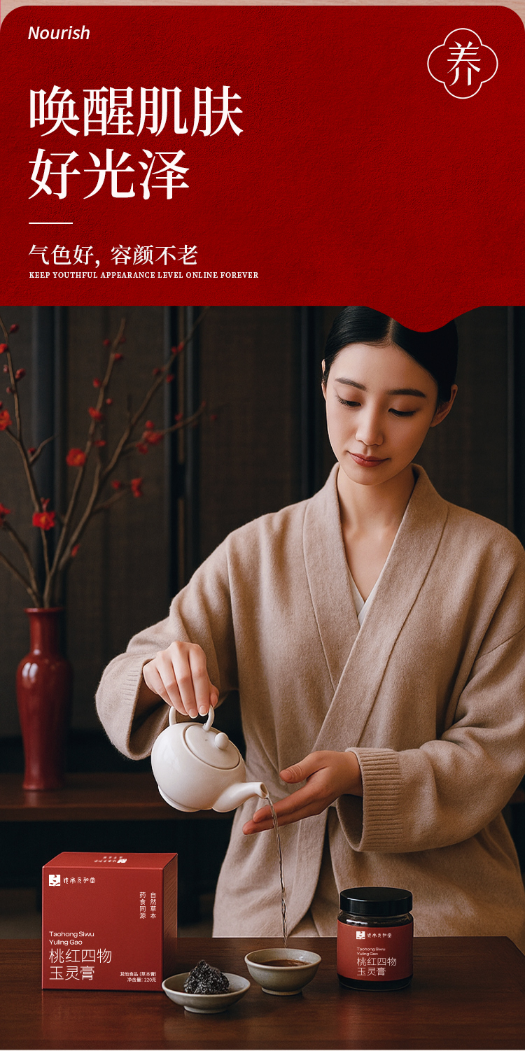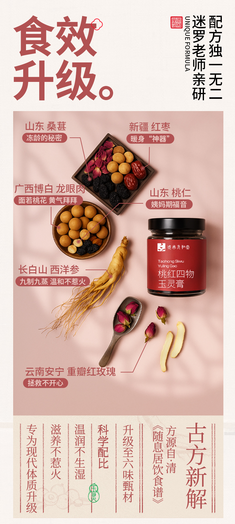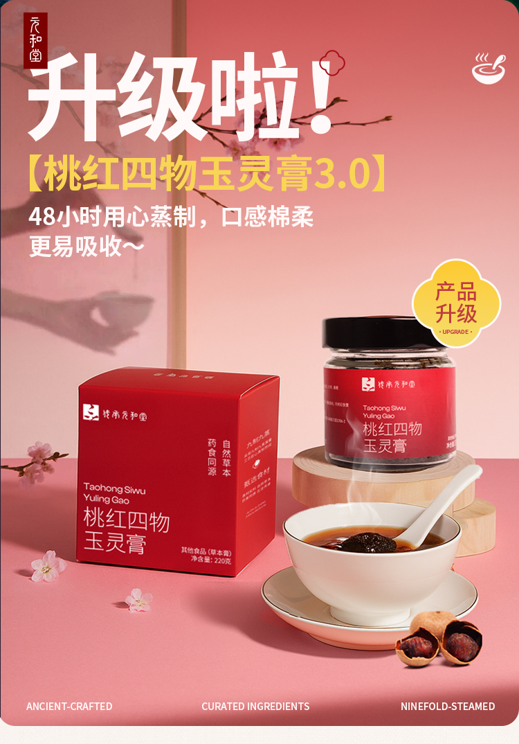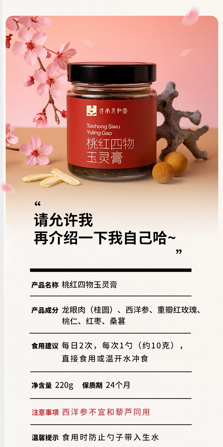 【桃红四物玉灵膏】元和堂 | 全新升级九制九蒸 桂圆女性姨妈养生古法膏 220g 元和好物 迷罗亲研