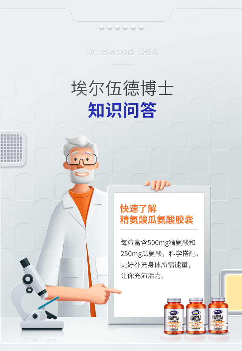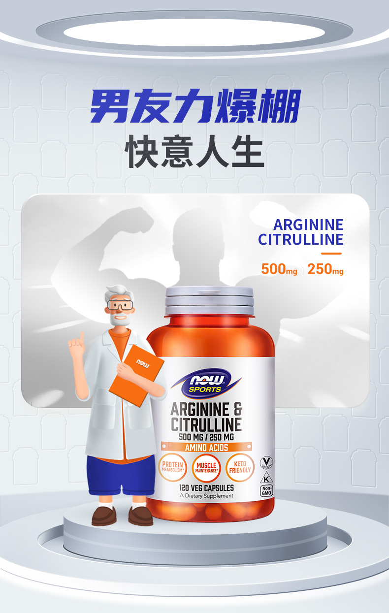肌围破冰。 美国NOW诺奥精氨酸瓜氨酸胶囊120粒/瓶