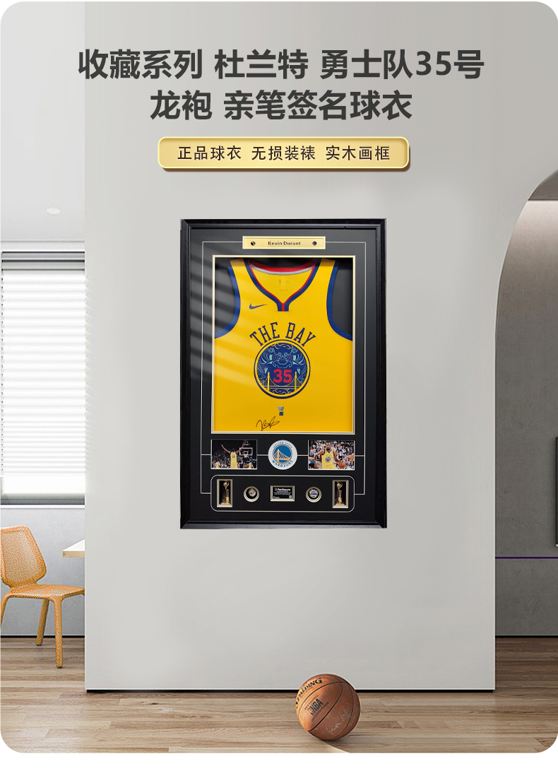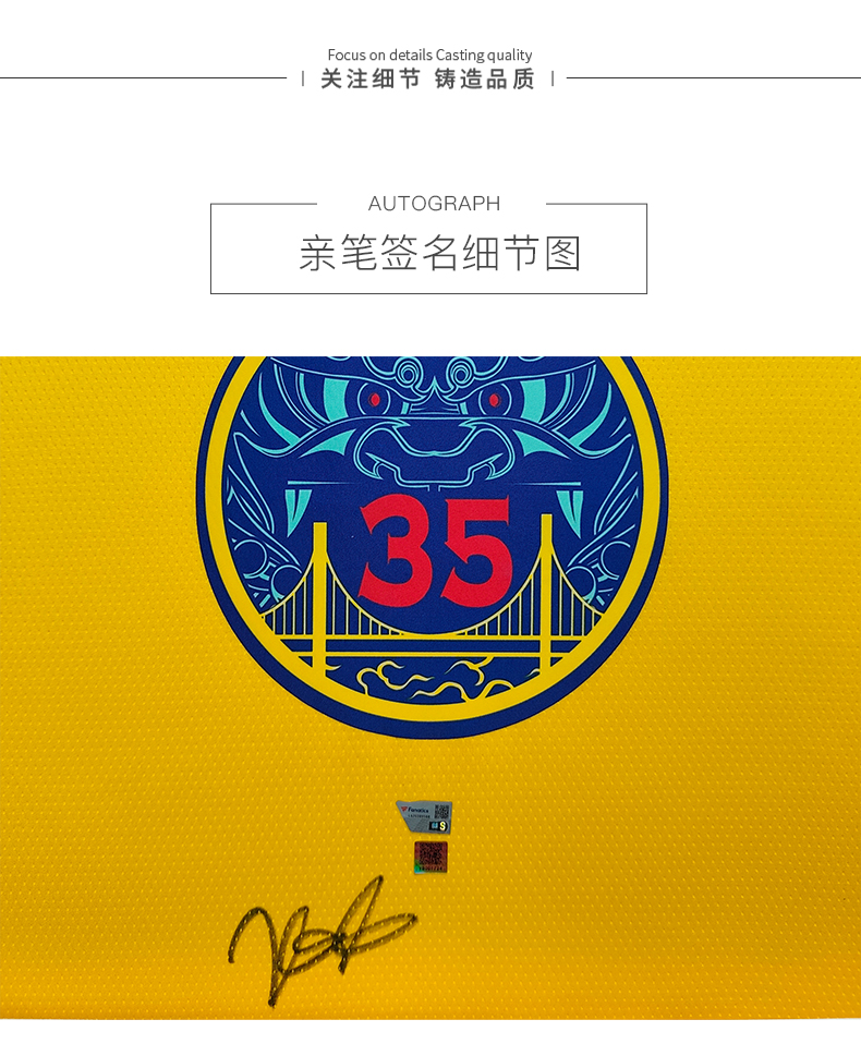 收藏系列 杜兰特 勇士队35号龙袍 亲笔签名球衣