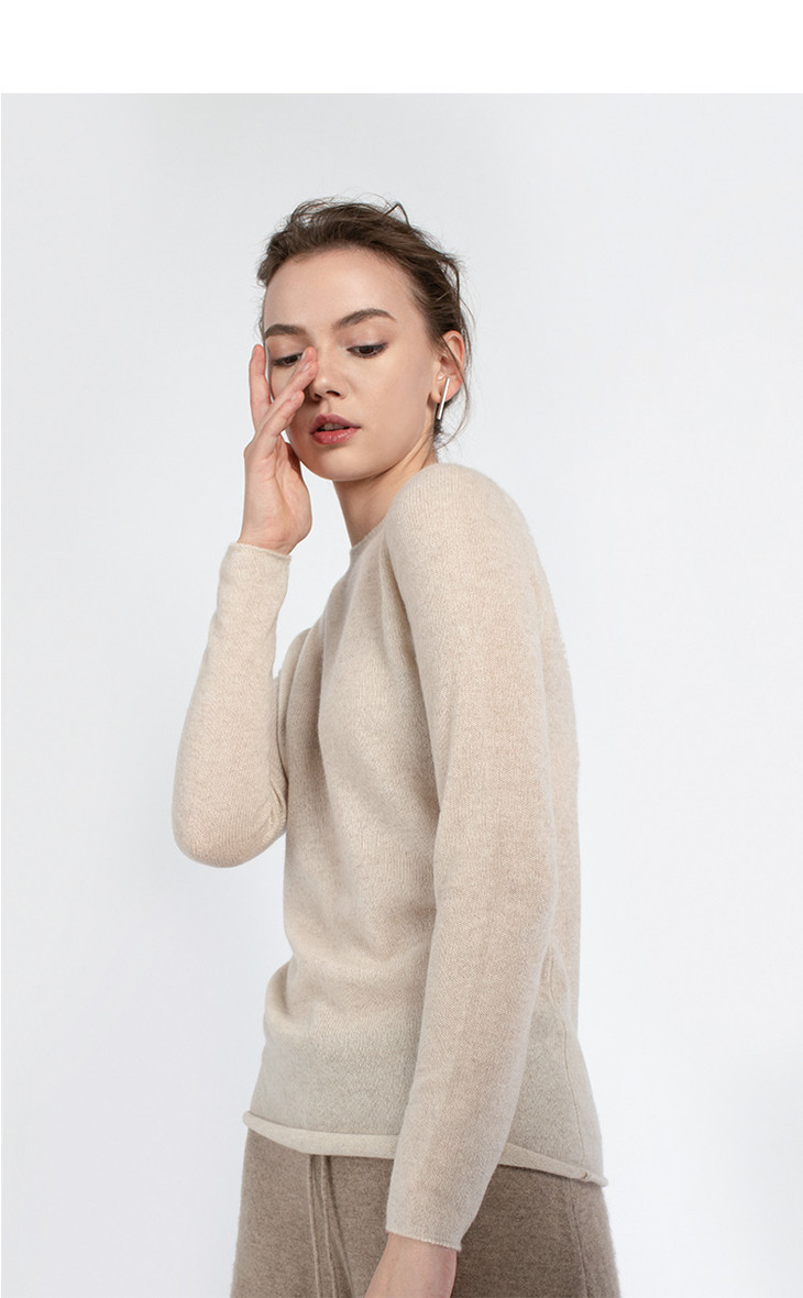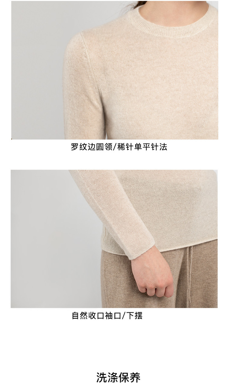 322工房无染色羊绒圆领长袖稀针套头衫白色针织衫毛衣女慵懒洋气
