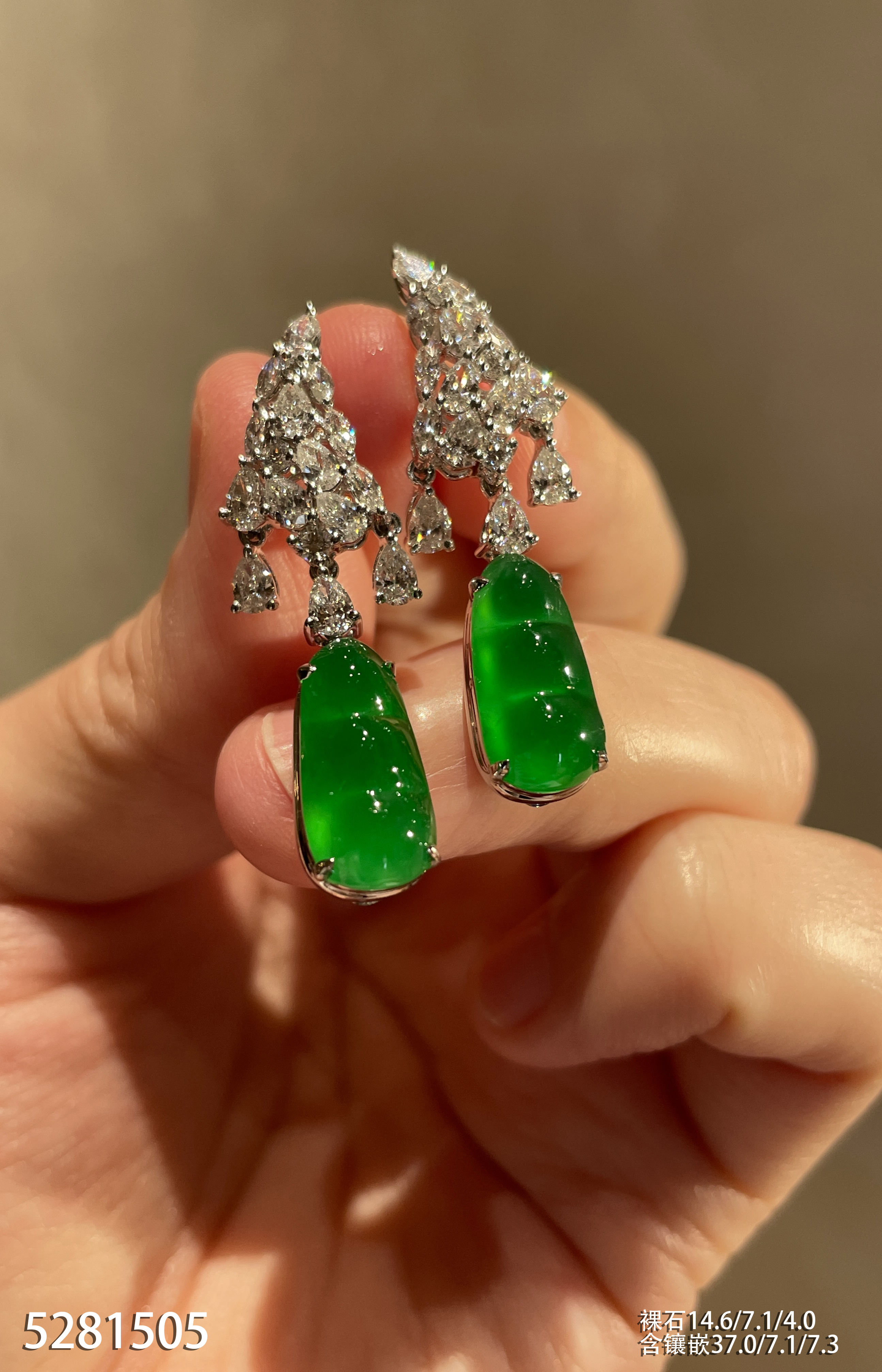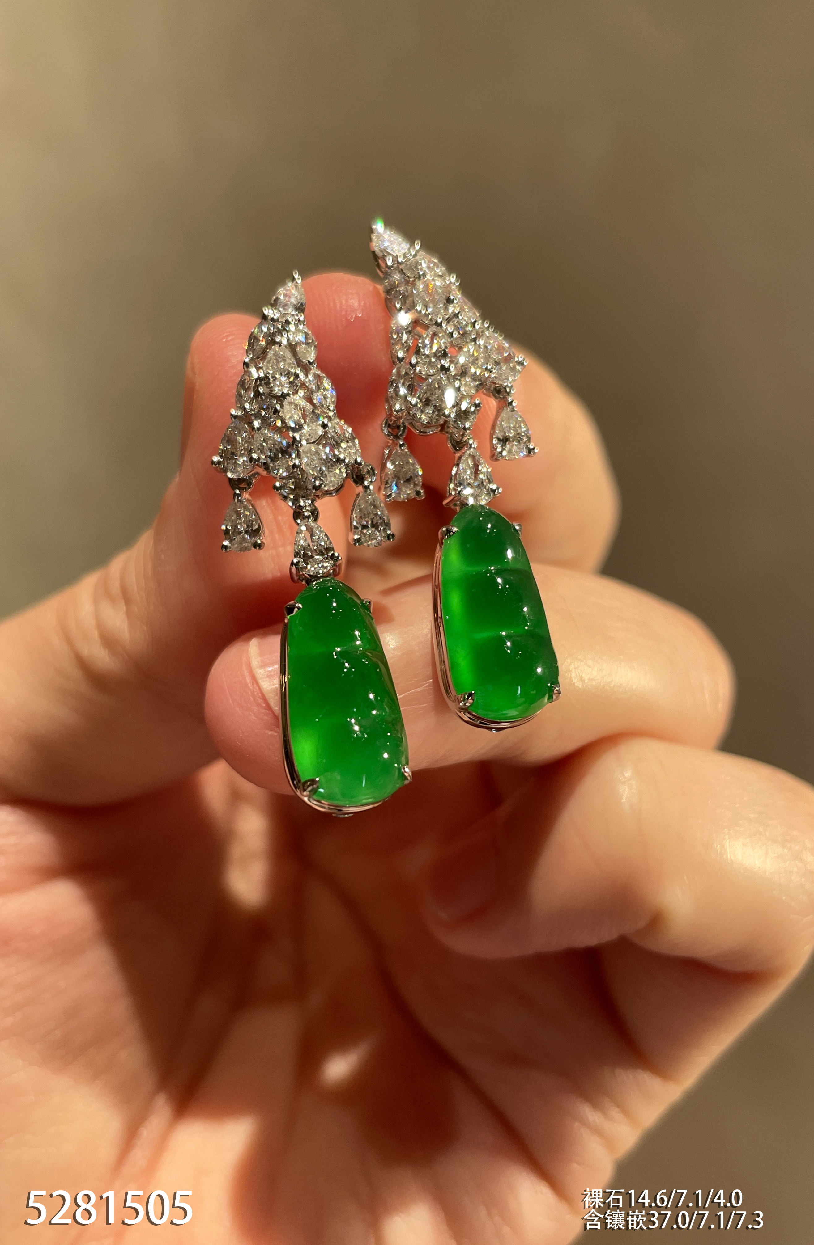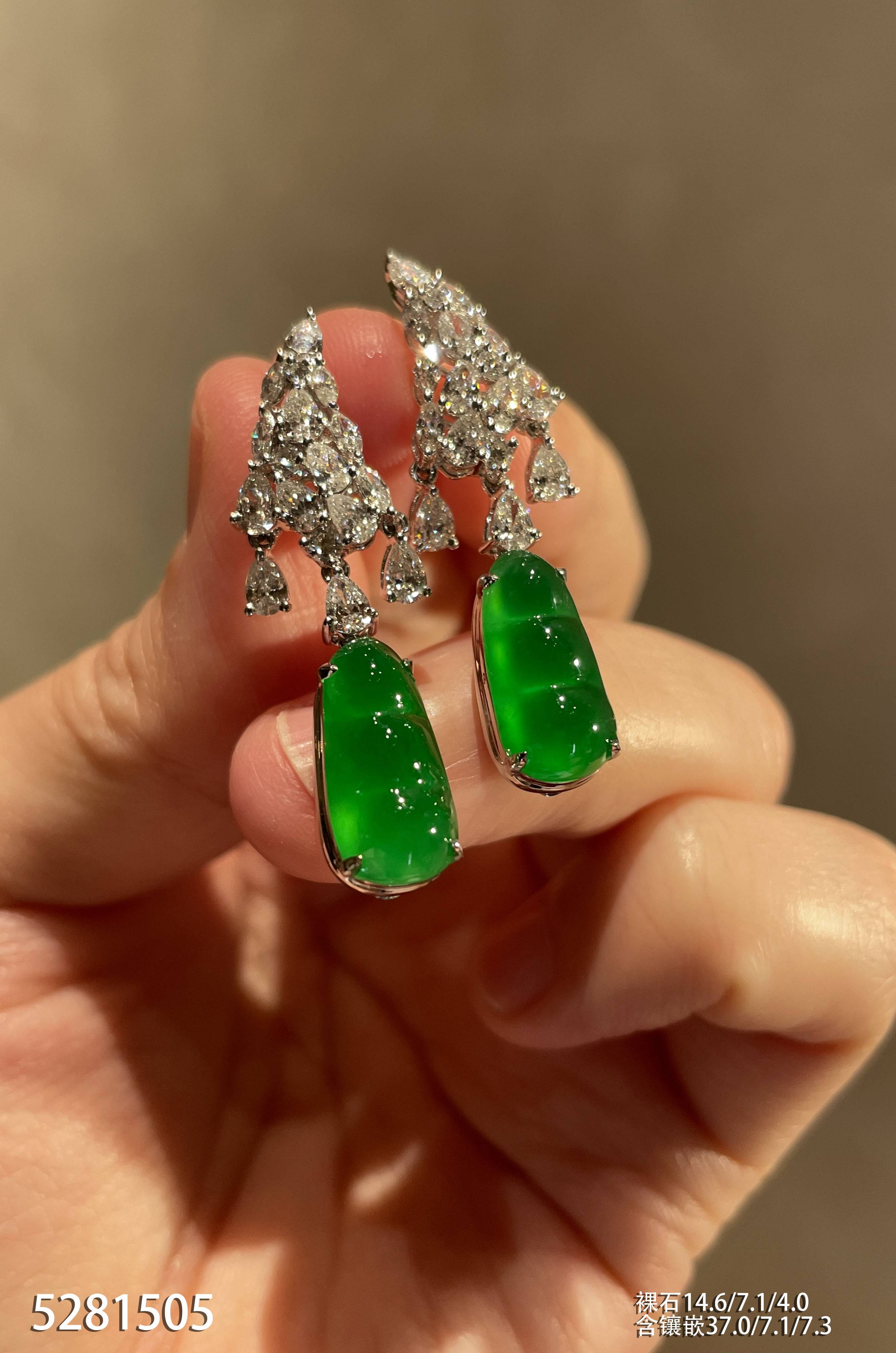 高冰种艳绿福豆耳坠【5281505】具体价格微信咨询