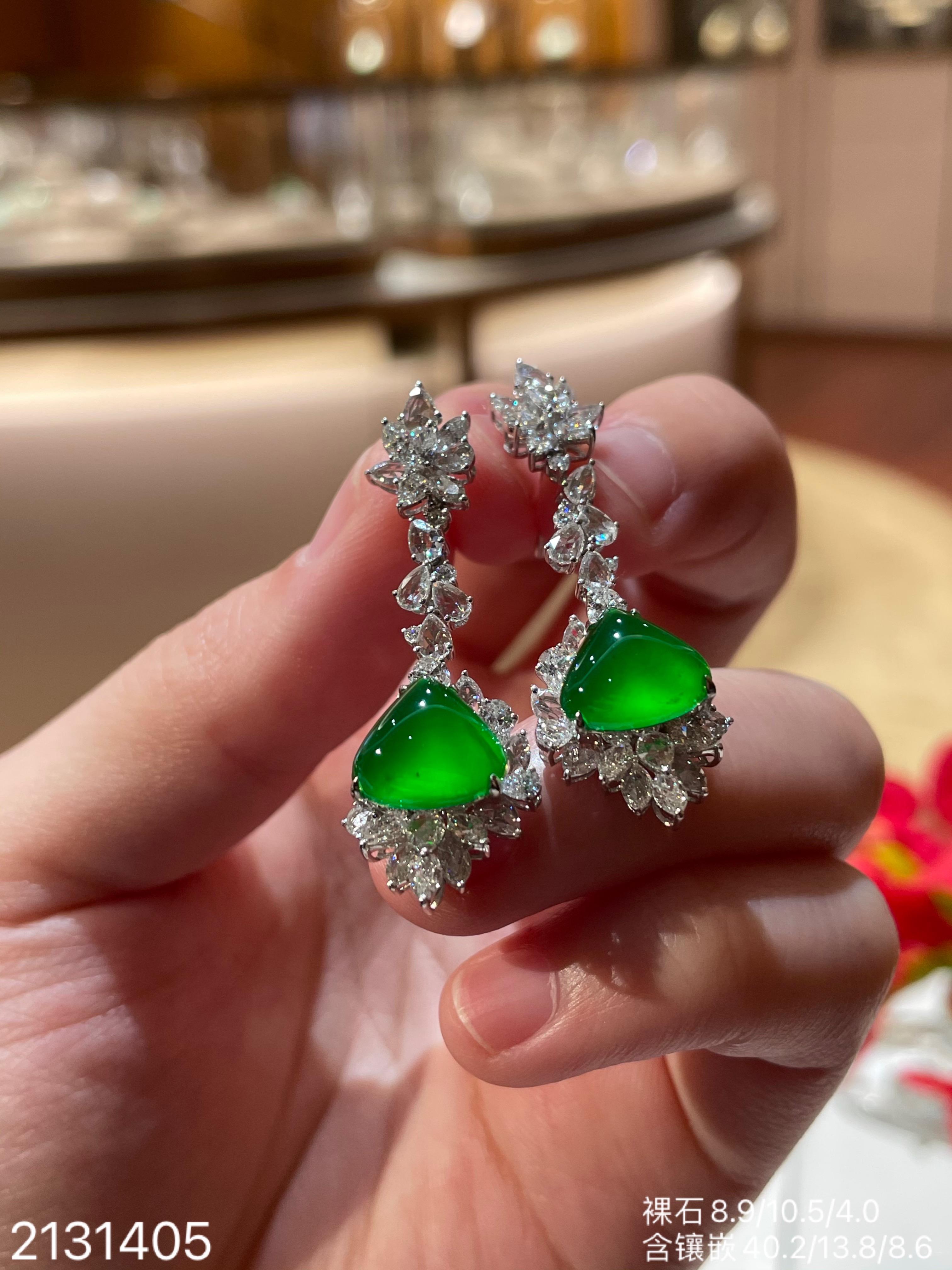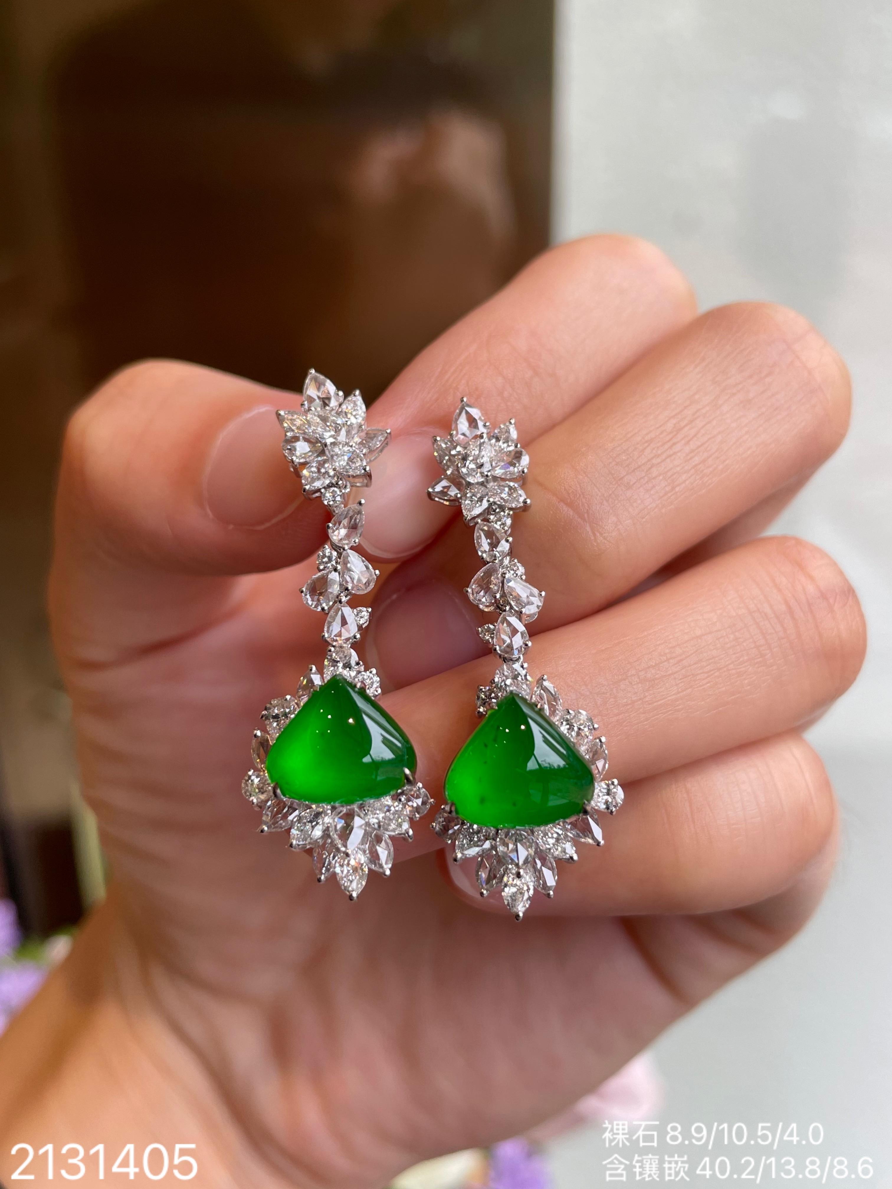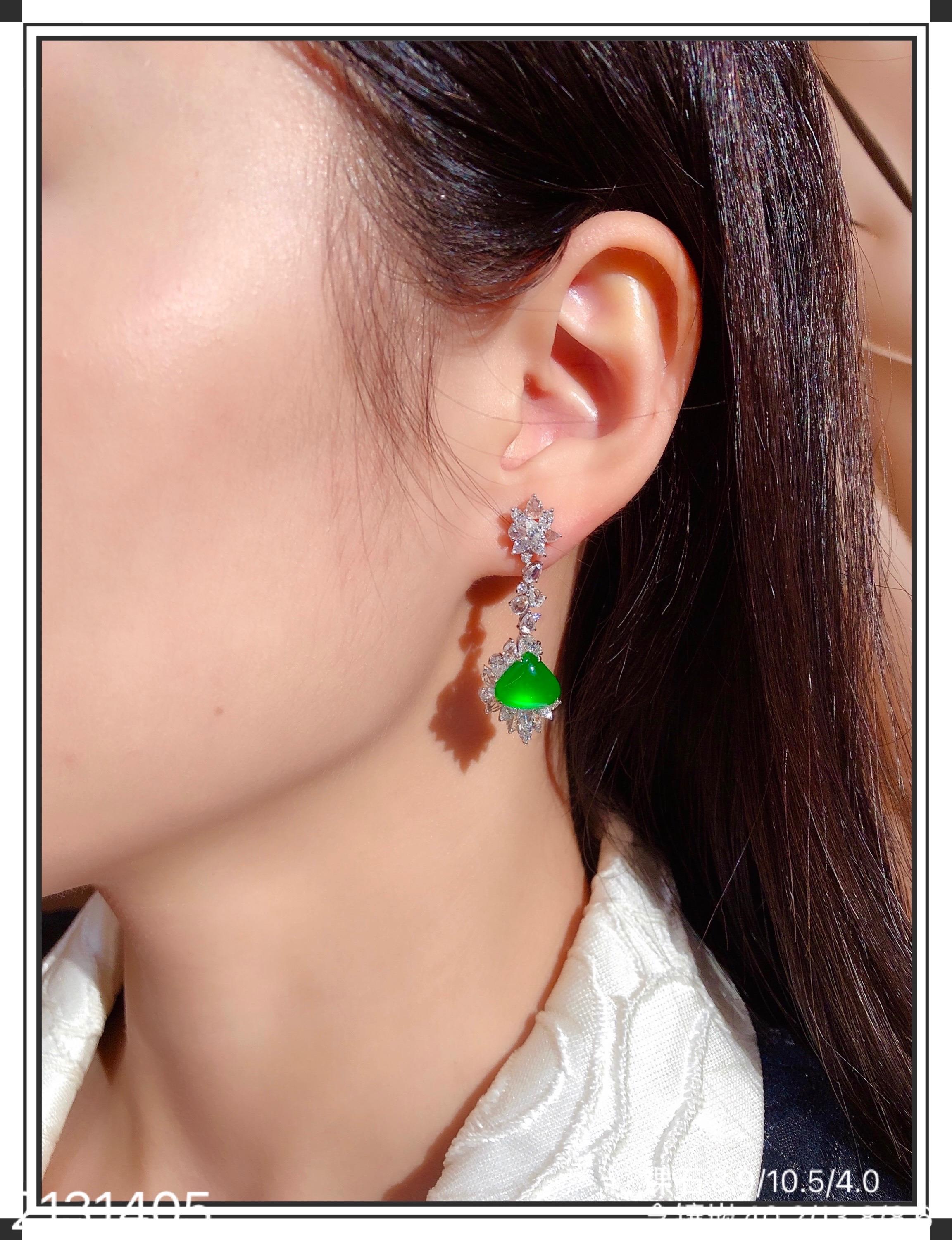 老坑玻璃种帝王绿水滴耳坠【2131405】具体价格微信咨询