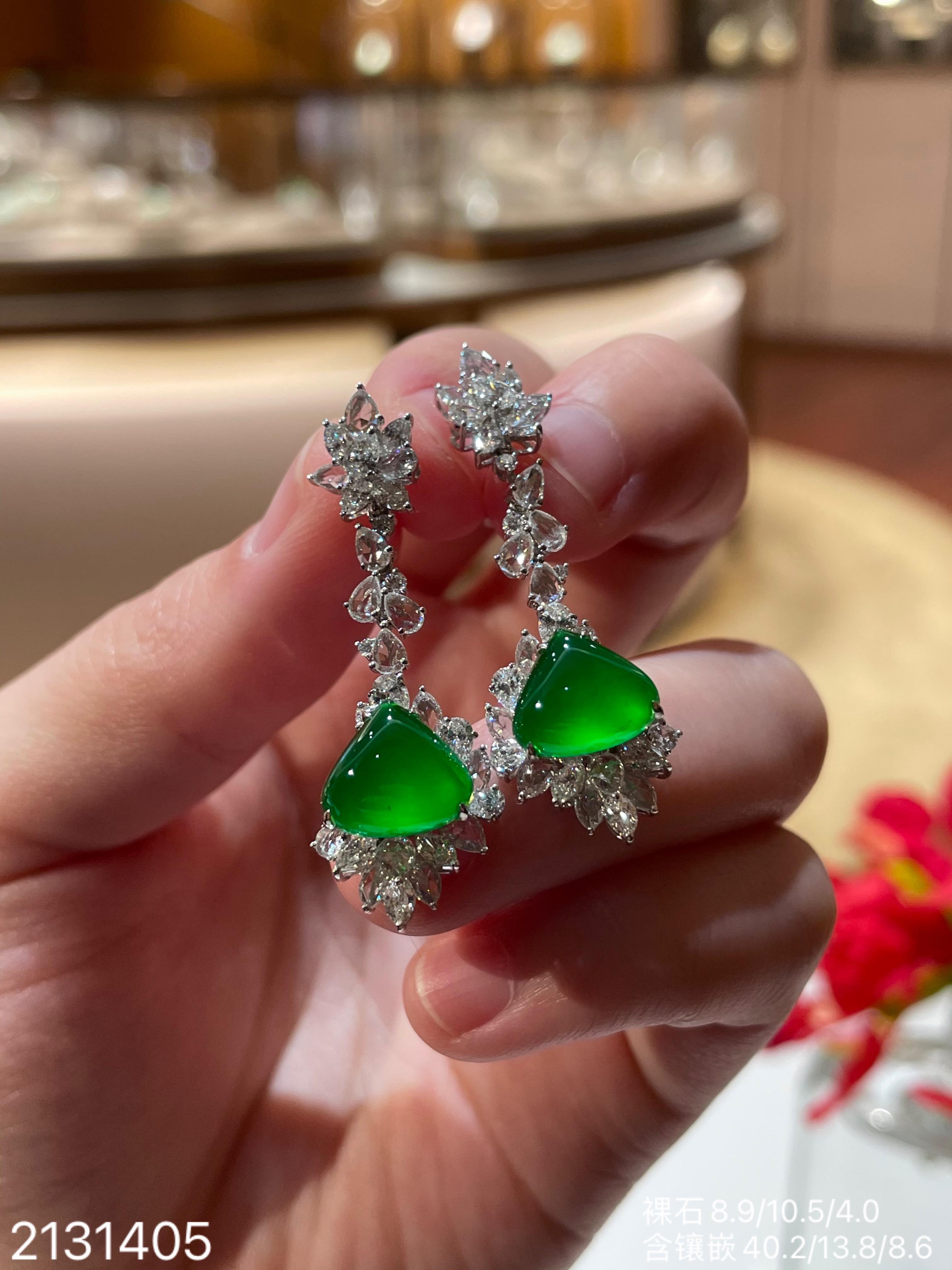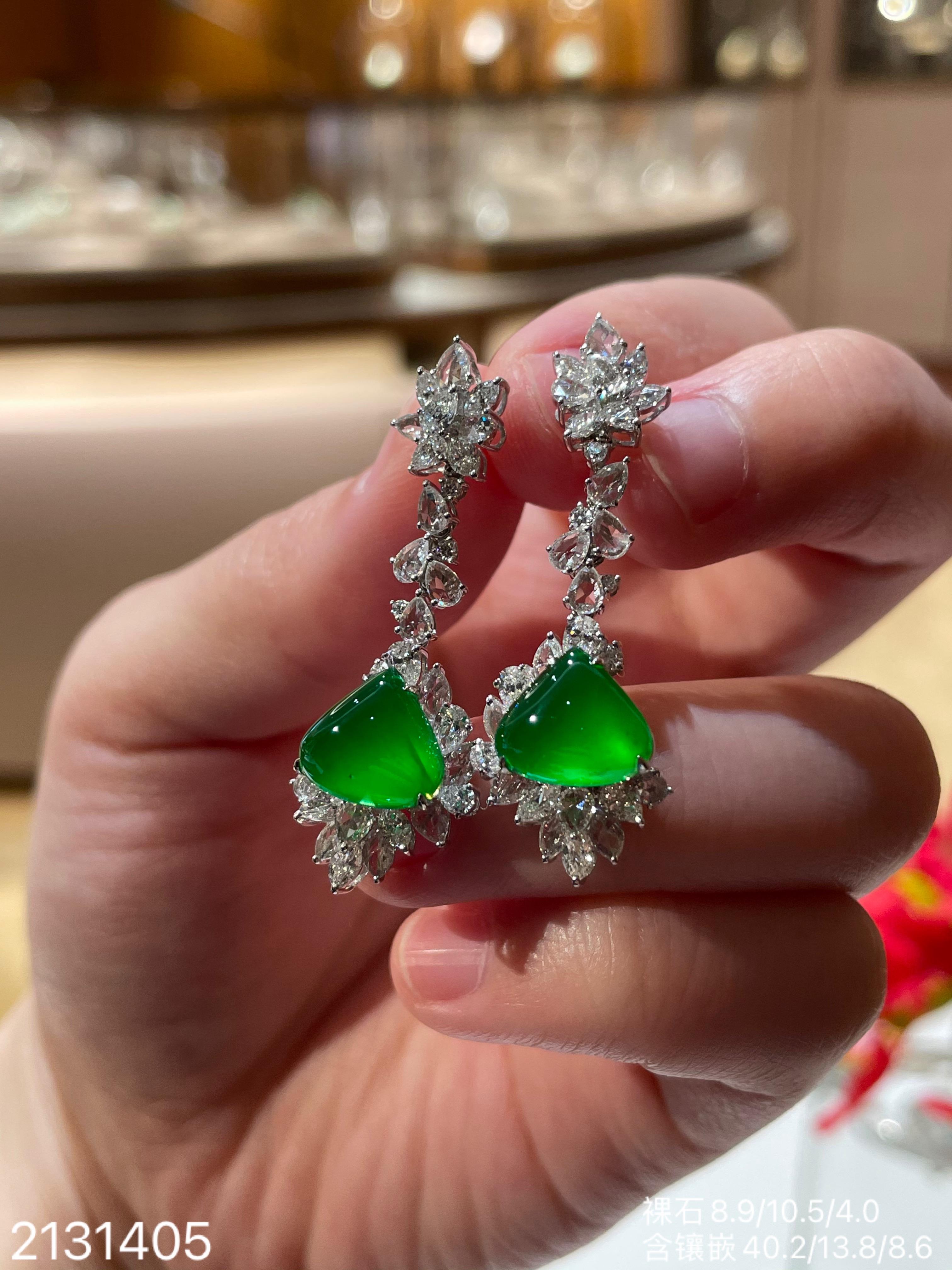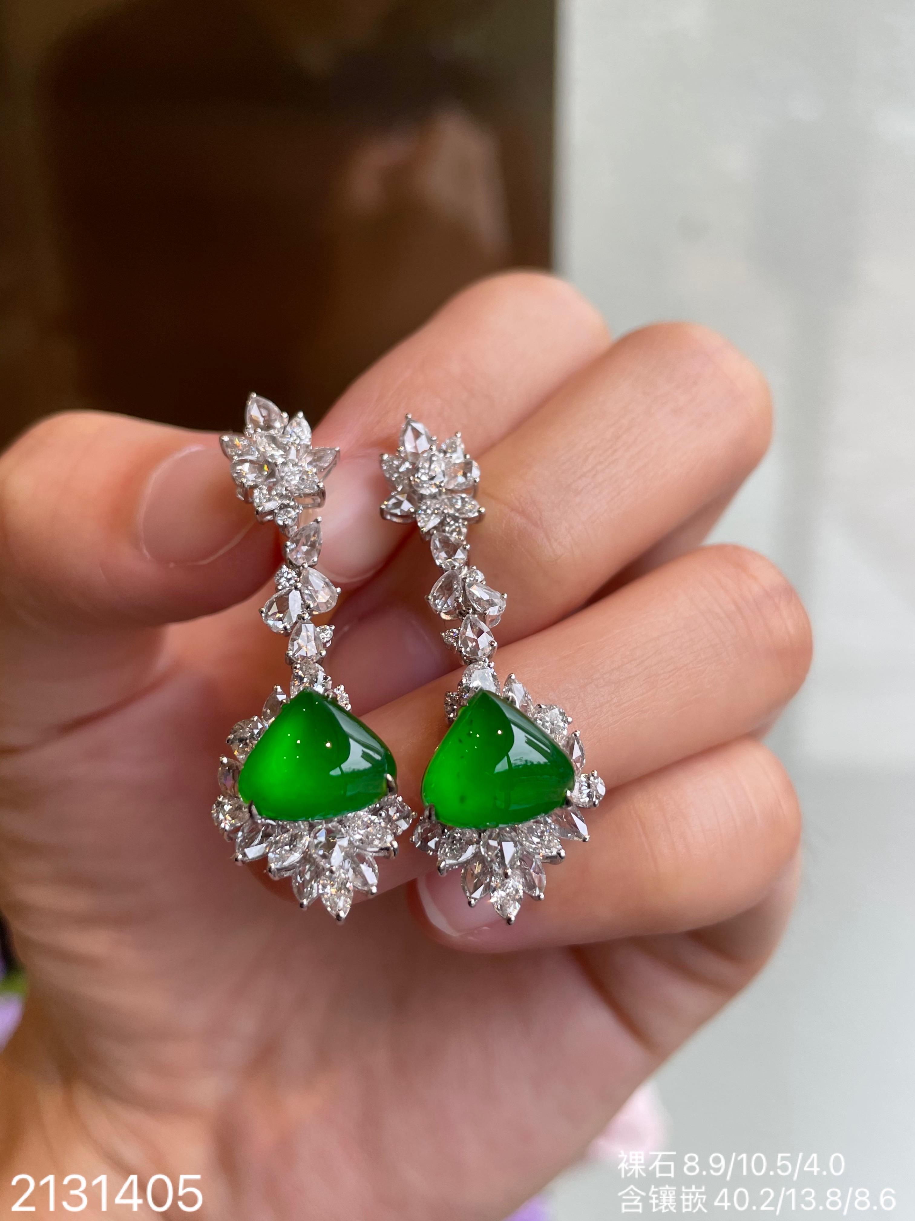 老坑玻璃种帝王绿水滴耳坠【2131405】具体价格微信咨询