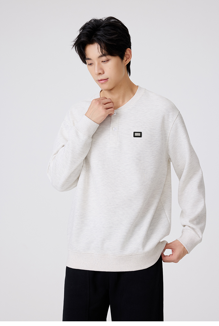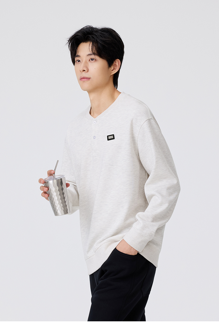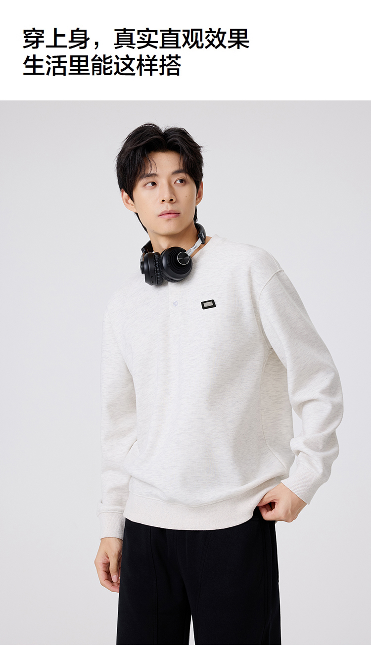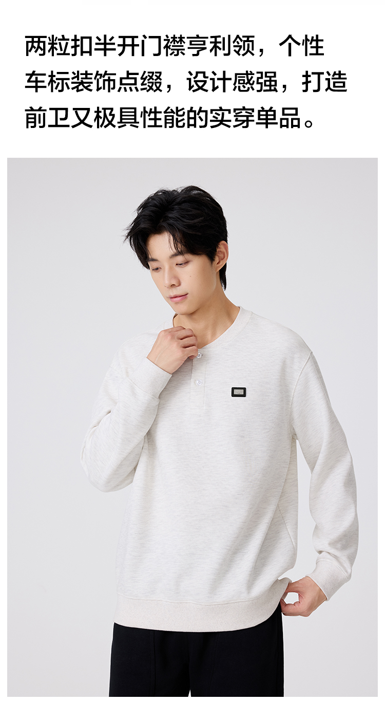 两粒扣半开襟男士卫衣25秋款舒适简约日常通勤校园青少年打底衫K&C