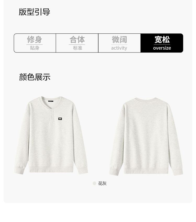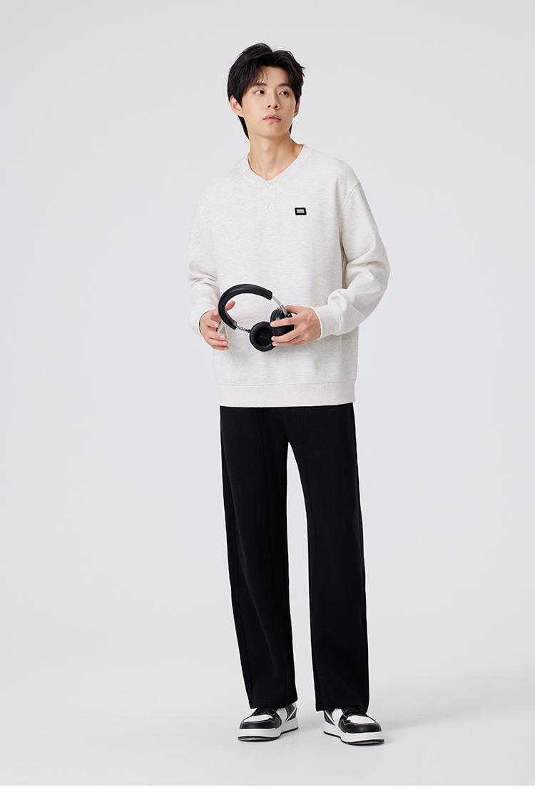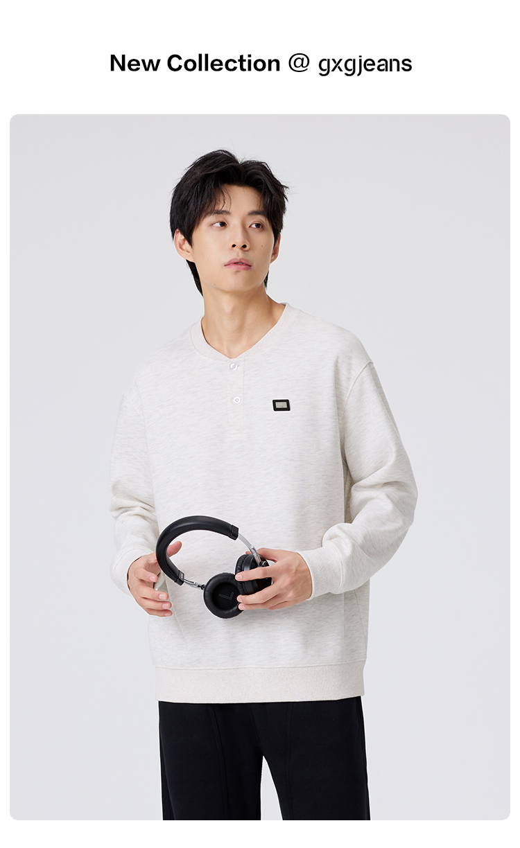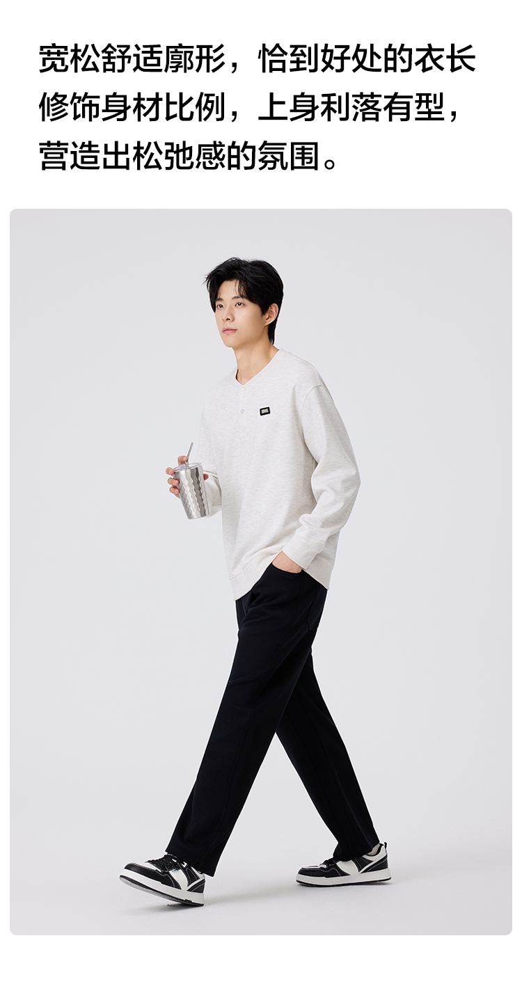 两粒扣半开襟男士卫衣25秋款舒适简约日常通勤校园青少年打底衫K&C