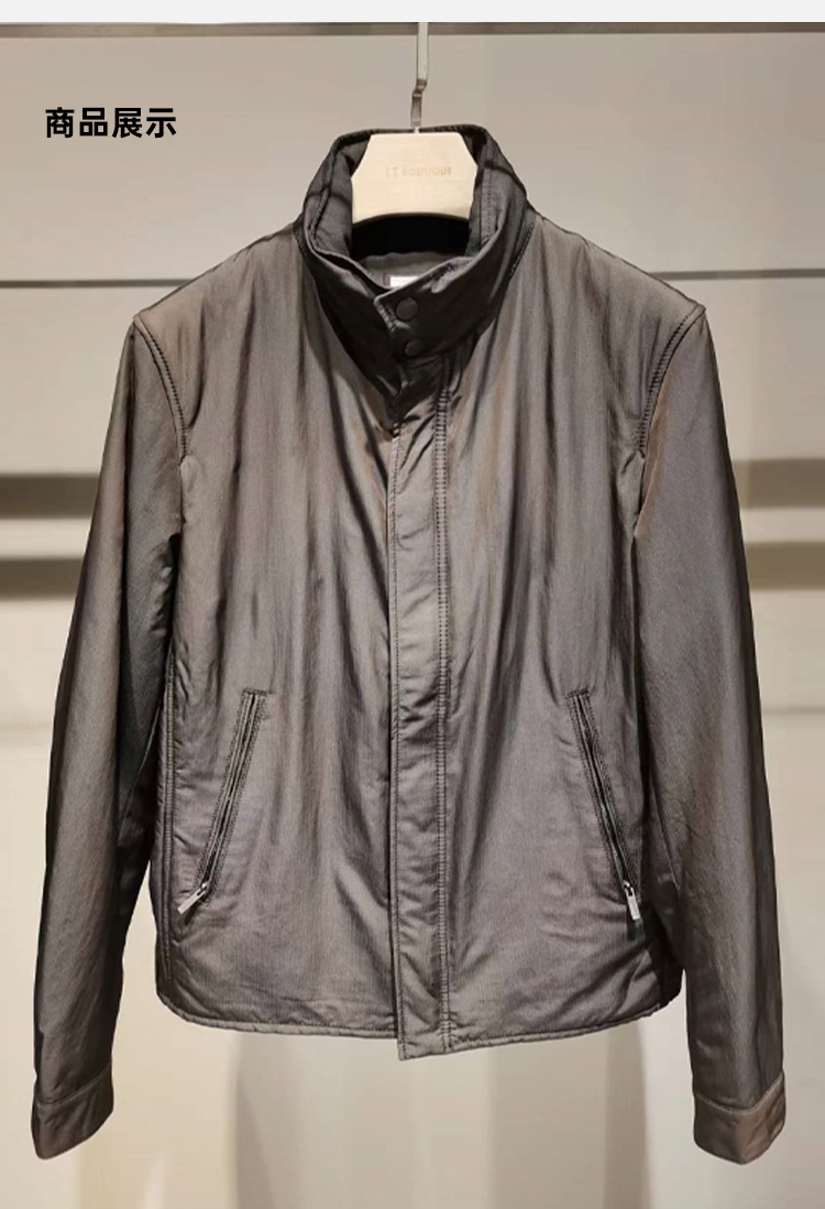 ARMANI 阿玛尼 男士拉链棉服外套 灰色 HCR01W HCW01