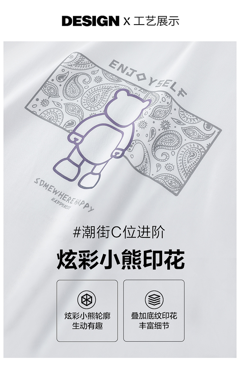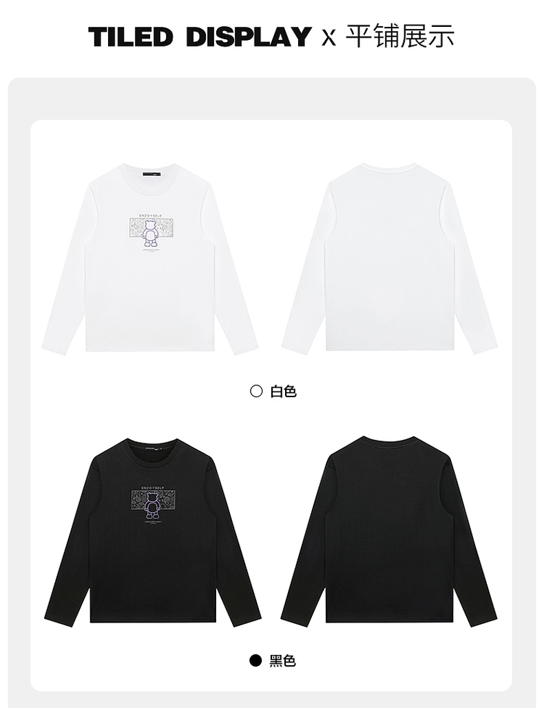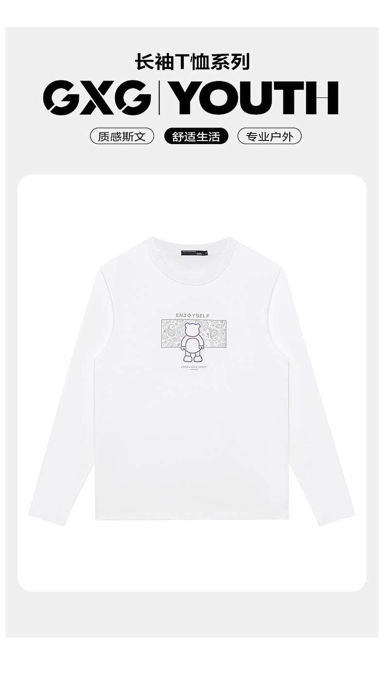 GXG男装【炫彩小熊】春季时尚潮流印花男款圆领百搭纯棉长袖t恤K&C