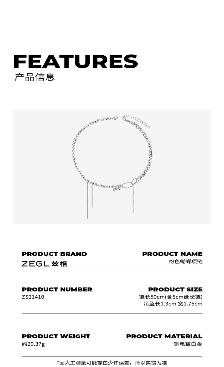 ZEGL设计师蝴蝶项链女轻奢小众2023年新款锁骨链配饰