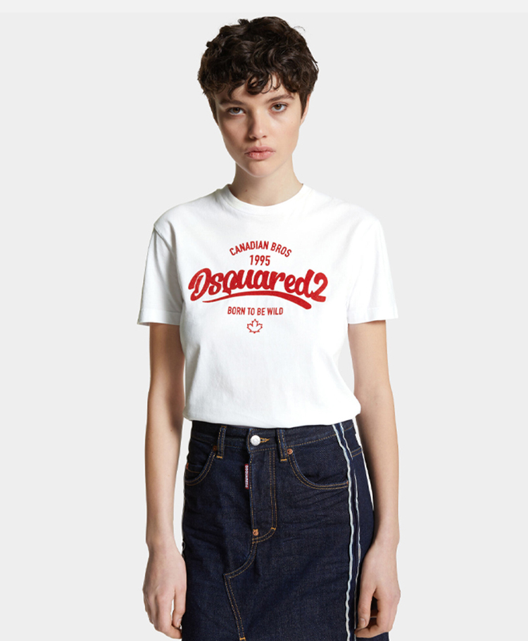 DSQUARED2 女士字母徽标印花棉质圆领短袖T恤 白色 S75GD0488 D20035 100