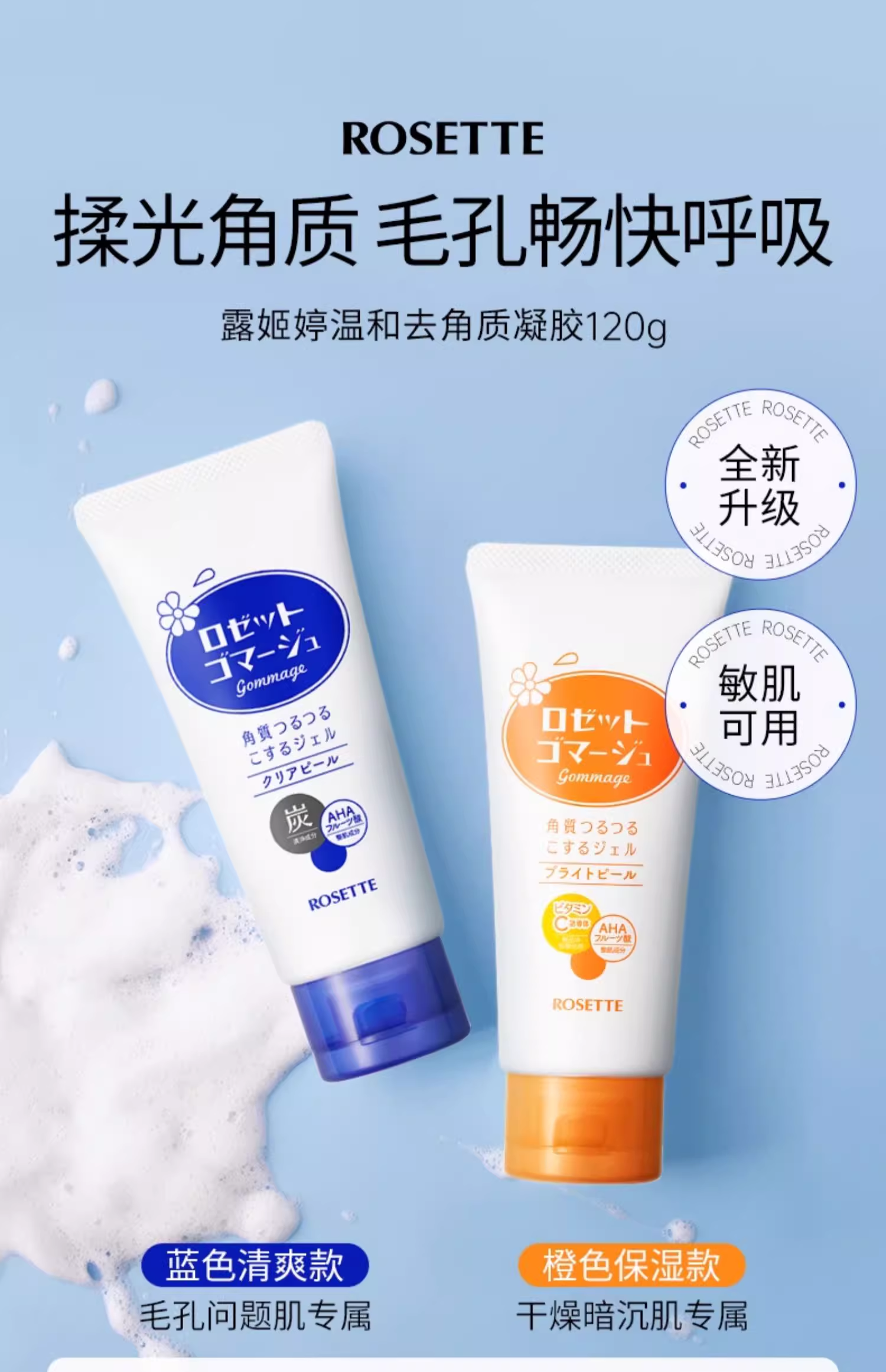 【跨境】ROSETTE露姬婷去角质面部洗面奶蓝色款偏油性肌肤120g
