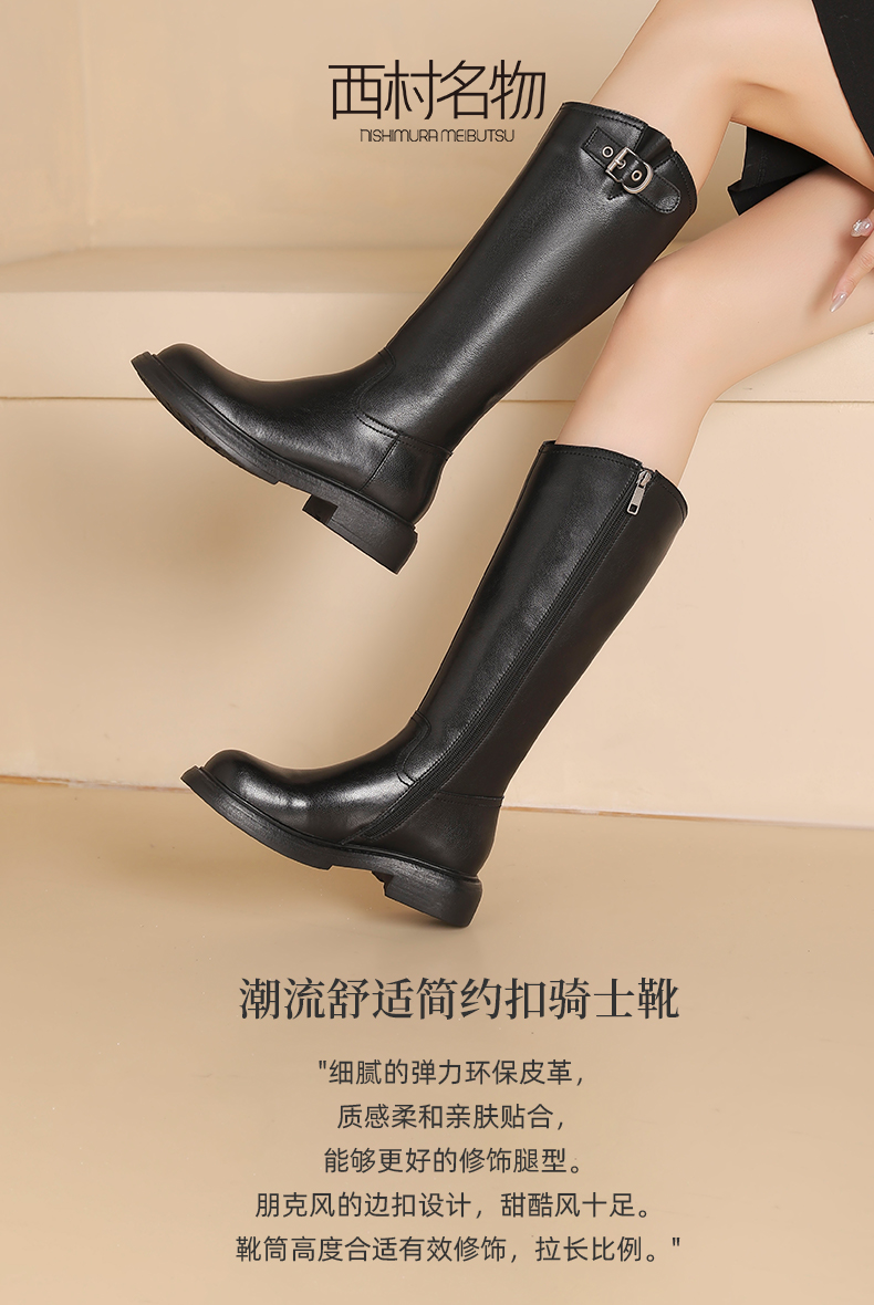 西村名物2024秋冬新款复古英伦风长筒靴酷飒显瘦百搭瘦瘦靴女T24DQ47091