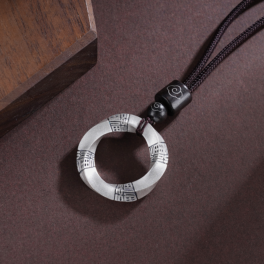 【寓意】:吊坠设计灵感源自莫比乌斯环,福字间隔錾刻的设计,彰显出纯粹的魅力,更寓意福气如同莫比乌斯环般源源不尽。