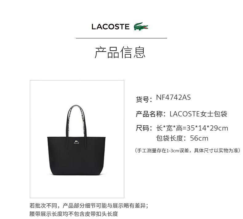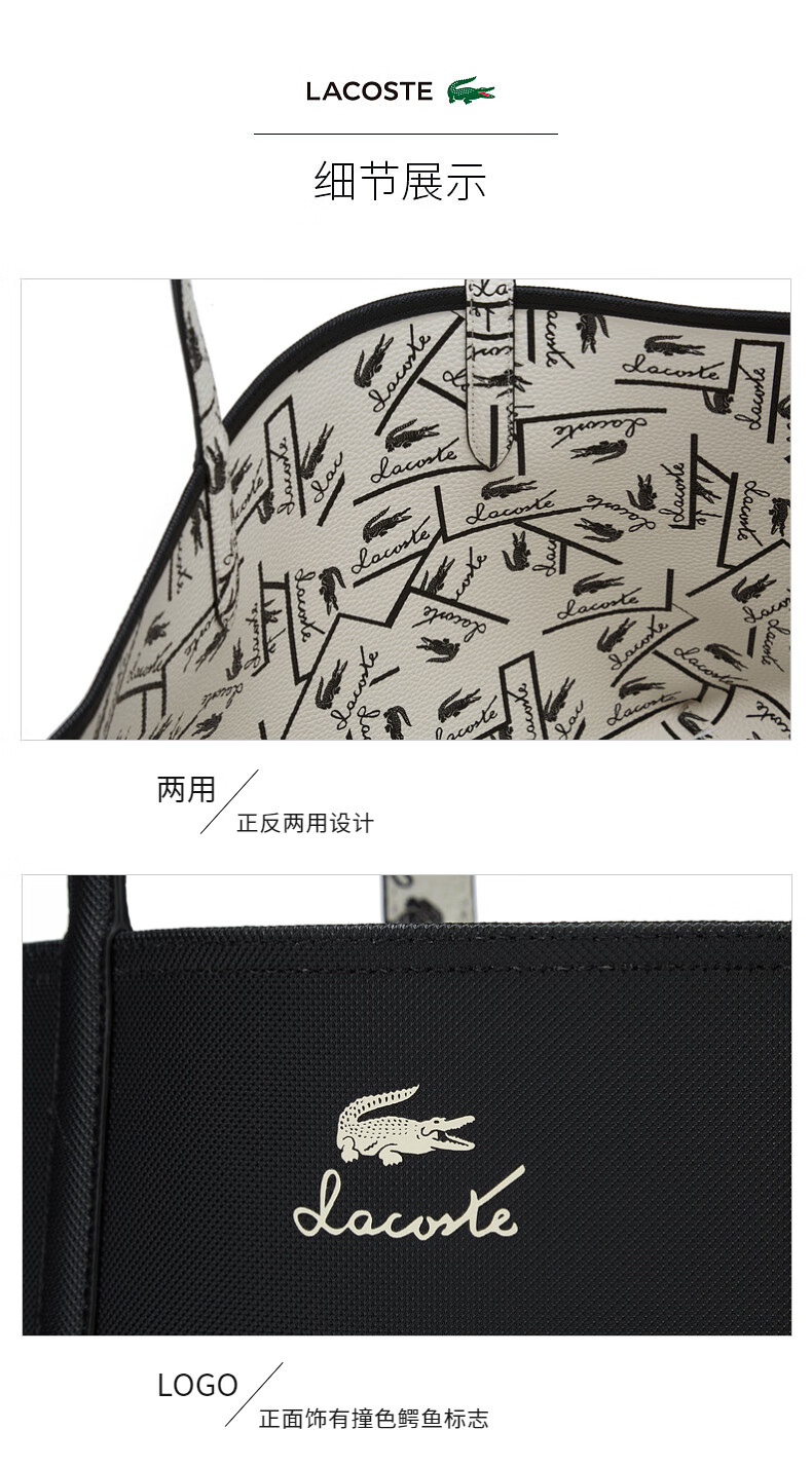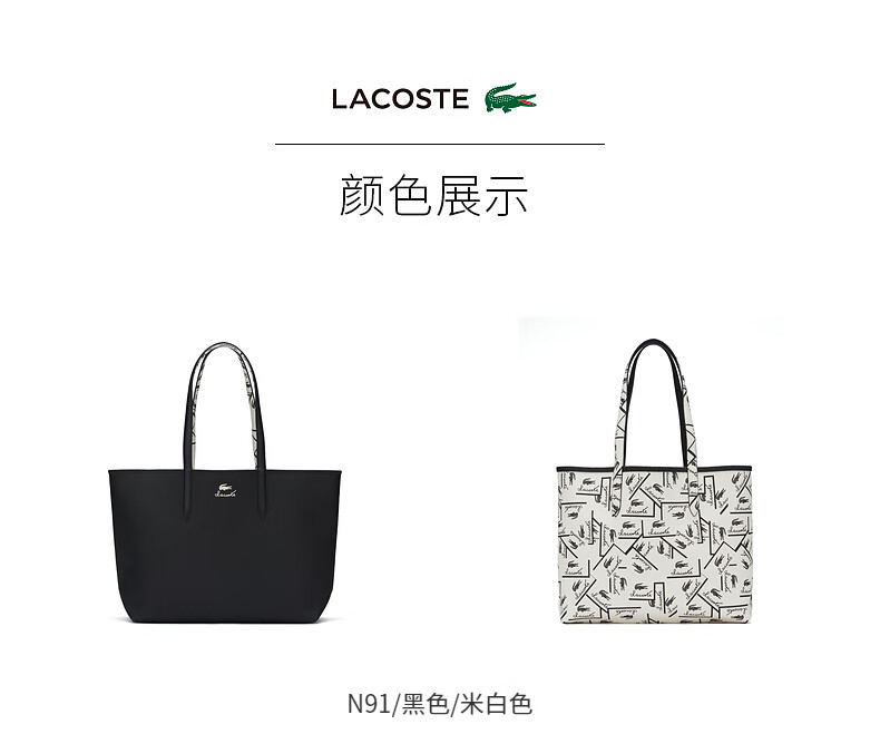 Lacoste法国鳄鱼女士新款时尚休闲正反两用托特包NF4742AS
